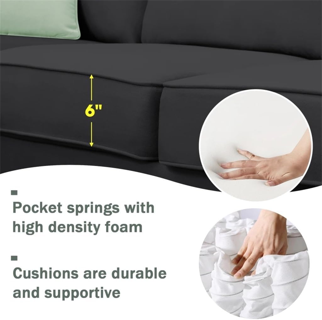 This sectional sofa is available in a variety of colors to suit many scenarios, to meet various daily use needs.Sturdy solid wood and iron frame, polyester fabric, filled with high-density sponge, making this sectional sofa beautiful and comfort, it can be perfectly matched with your apartment, house or conference room. With ottoman couch set that can be placed on the both side of the sofa couch that to create a left (right) facing chaise lounge you need for your limited spaces but large sofa couch needs. This modular sofa features premium fabrics and a sturdy iron frame; high-density foam and oversized cushions provide you with upgraded comfort, whether you're sitting or lying down to relax.Comfortable foam, pocketed spring-filled pads supported by a curved spring structure. Heavy-duty S-shaped lines span the frame from front to back, providing even comfort and support throughout the seating areaThe sofa is built with a iron frame that is enough to provide long service times. Equipped with thickened legs to support you securely and ensure excellent stability.This sectional sofa needs to be assembled, instructions manual and tool included.overall dimensions: 112.5''W x 87.5''D x 33.5''H; Ottoman size: 29"W x32"D x 18"H; Weight Capacity: 300lbs/seat. Upholstery Material polyesterFrame Material Solid + Manufactured Wood+ironFrame Material Details Solid Wood and plywood+ironLeg Material PlasticSeat Fill Material Foam; Pocket springSeat Construction Sinuous SpringsBack Fill Material PolyesterProducts included1*left arm facing 3-seater, right arm facing 3-seater and removable ottoman, (no other presentation items included).Notice:1. Due to manual measurement, please allow 2-3% error, before you bid, please make sure you don't mind.2. The color may vary due to different displays, please refer to the actual product.
