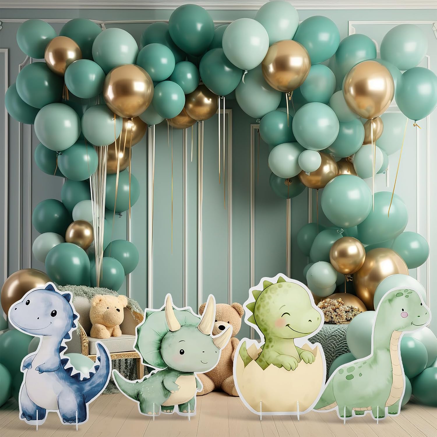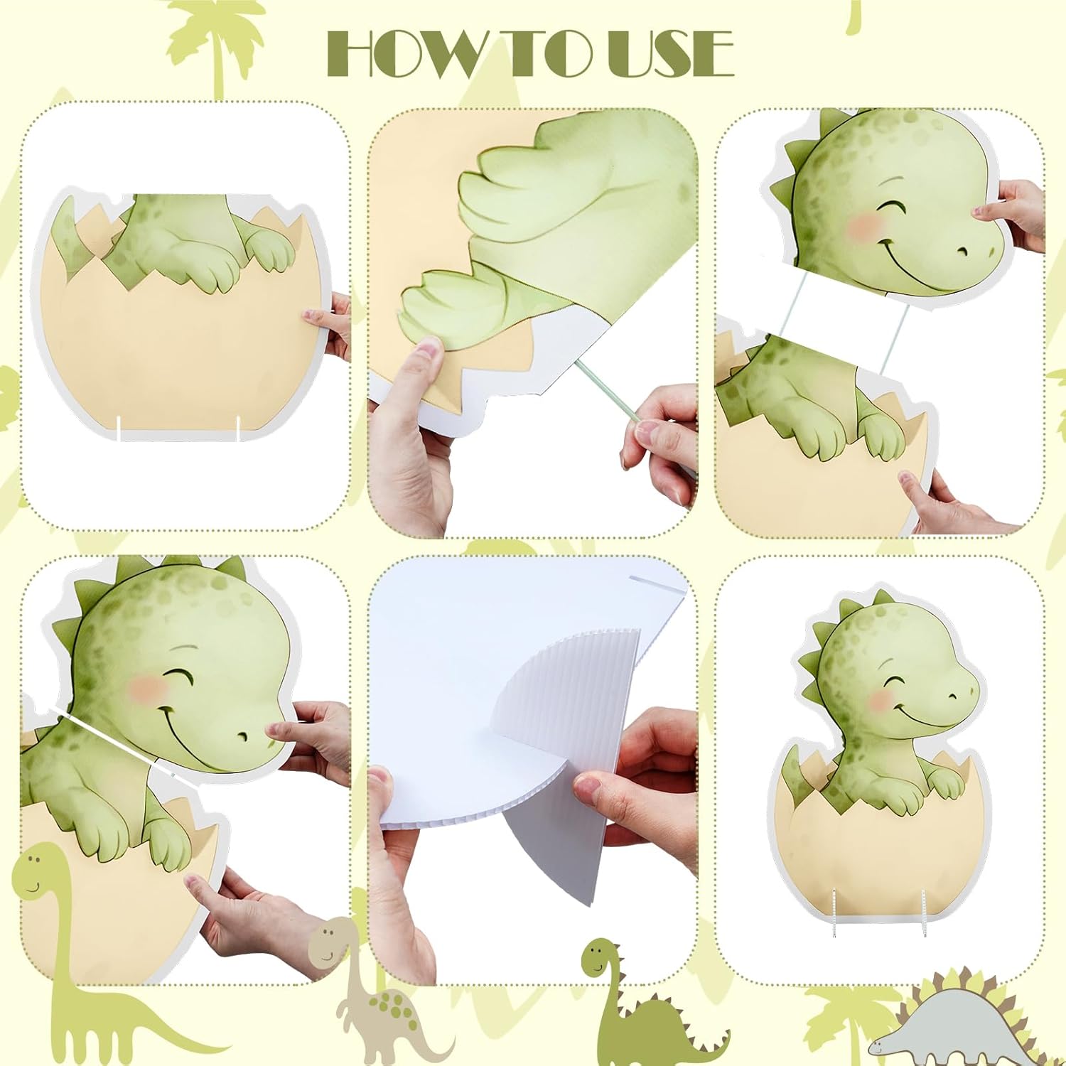 Warm tip: Please read the description carefully before purchase. Please contact us if you have any problems Notes: Manual measurement, please allow slight errors on size. The color may exist a slight difference due to different screen displays. Specifications: Material: plastic Main color: green, blue Size: about 19.5 x 21.5 inches, 19.6 x 20.2 inches, 15.3 x 21.6 inches, 14.2 x 21.6 inches Package includes: 4 x Large Dinosaur Cutout Cardboard Standup Decorations