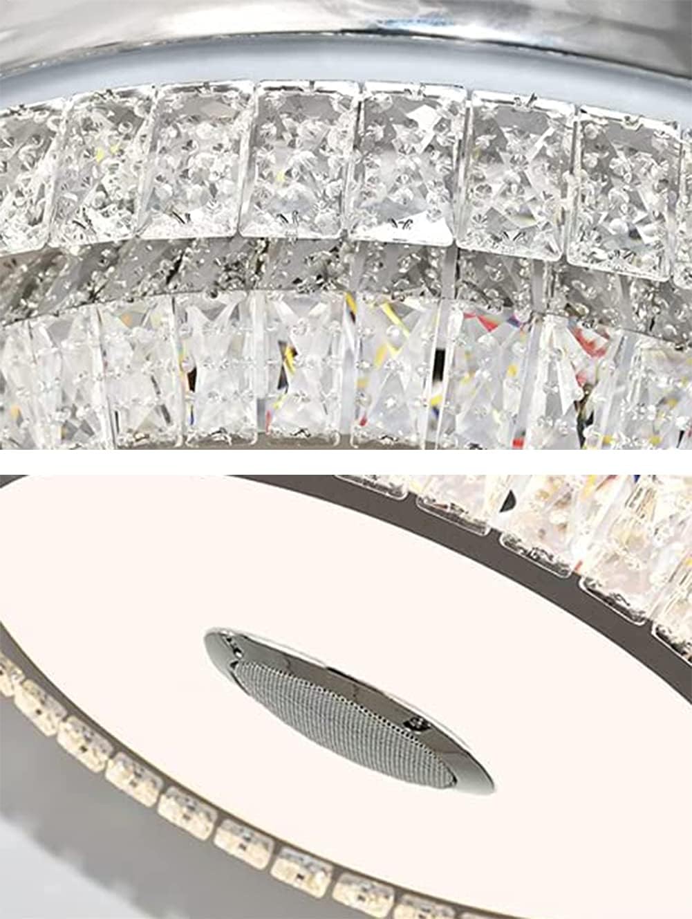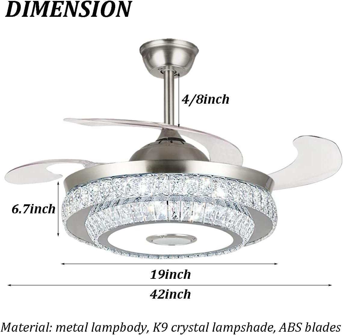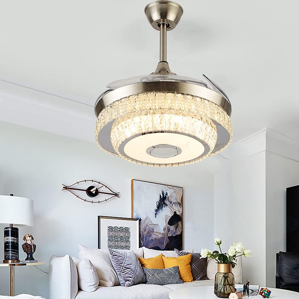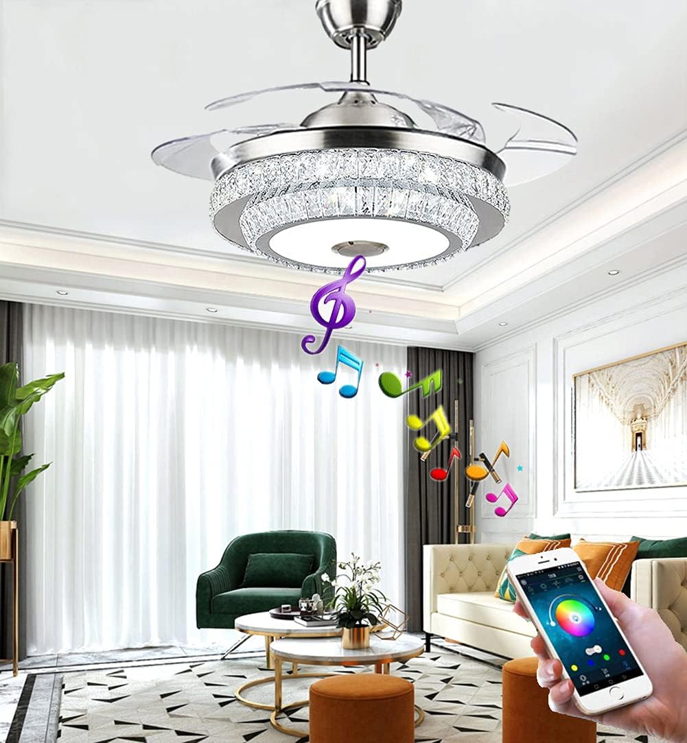 | Included Components | 2 down rods, bluetooth speaker, colorful led light, crystal lampshade, silent copper motor |