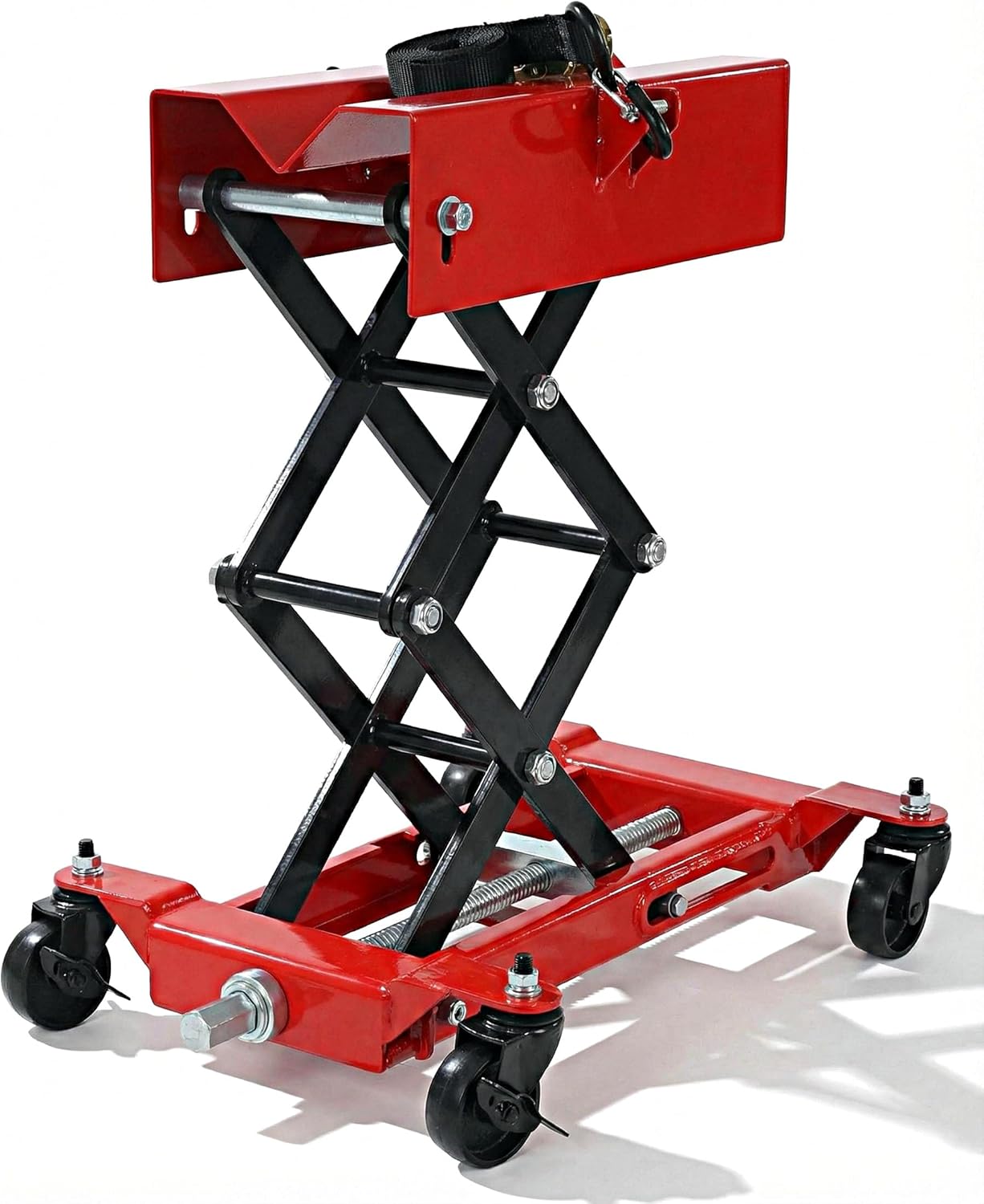 Constructed from heavy-duty Q235 steel, this transmission jack delivers exceptional strength and durability, capable of handling loads up to 450 lb (204 kg). It is perfectly suited for demanding automotive repair and maintenance work. Featuring an adjustable lift range from 7" to 23" (18–58 cm), it allows you to raise components to the optimal working height, making it versatile enough for both compact passenger cars and larger trucks.Designed for ease of use, the jack is equipped with four smooth-rolling swivel casters and two brake wheels, enabling effortless positioning and movement under the vehicle. This enhances workflow efficiency whether in a home garage or a professional workshop. Safety and stability are prioritized with a wide base and a durable nylon safety strap, ensuring the transmission remains securely in place during lifting and lowering operations.Beyond transmissions, this versatile tool is also ideal for a range of automotive tasks, including truck repairs, exhaust system work, and general vehicle maintenance, making it a practical and valuable addition to any tool collection.