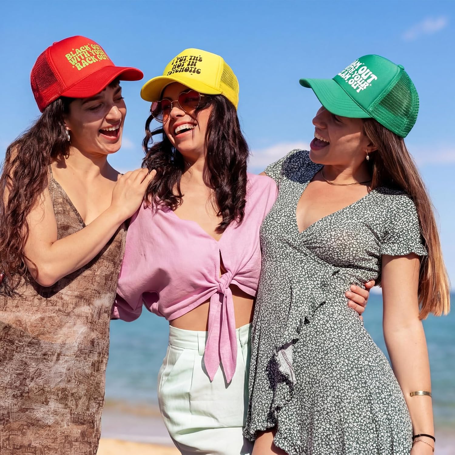 Features: Stand out with these neon colored girls trip gifts that add a bold touch to any outfit. Perfect for making a statement at any event, these girls trip baseball caps are both playful and stylish, ideal for catching the spotlight at any gathering or festivity. Looking for a thoughtful gift idea? These girls trip gifts are tailor made for the bride and her bridesmaids. Surprise them with these girls trip baseball caps, ensuring everyone can celebrate in style and cherish the good times together. Specifications: Material: polyester Color: multicolor Size: suitable for head circumferences of 58-64cm/22.8-25.2 inches Package includes: 6 x Girls trip trucker hats Notes: Manual measurement, please allow slight errors on size. The color may exist a slight difference due to different screen displays