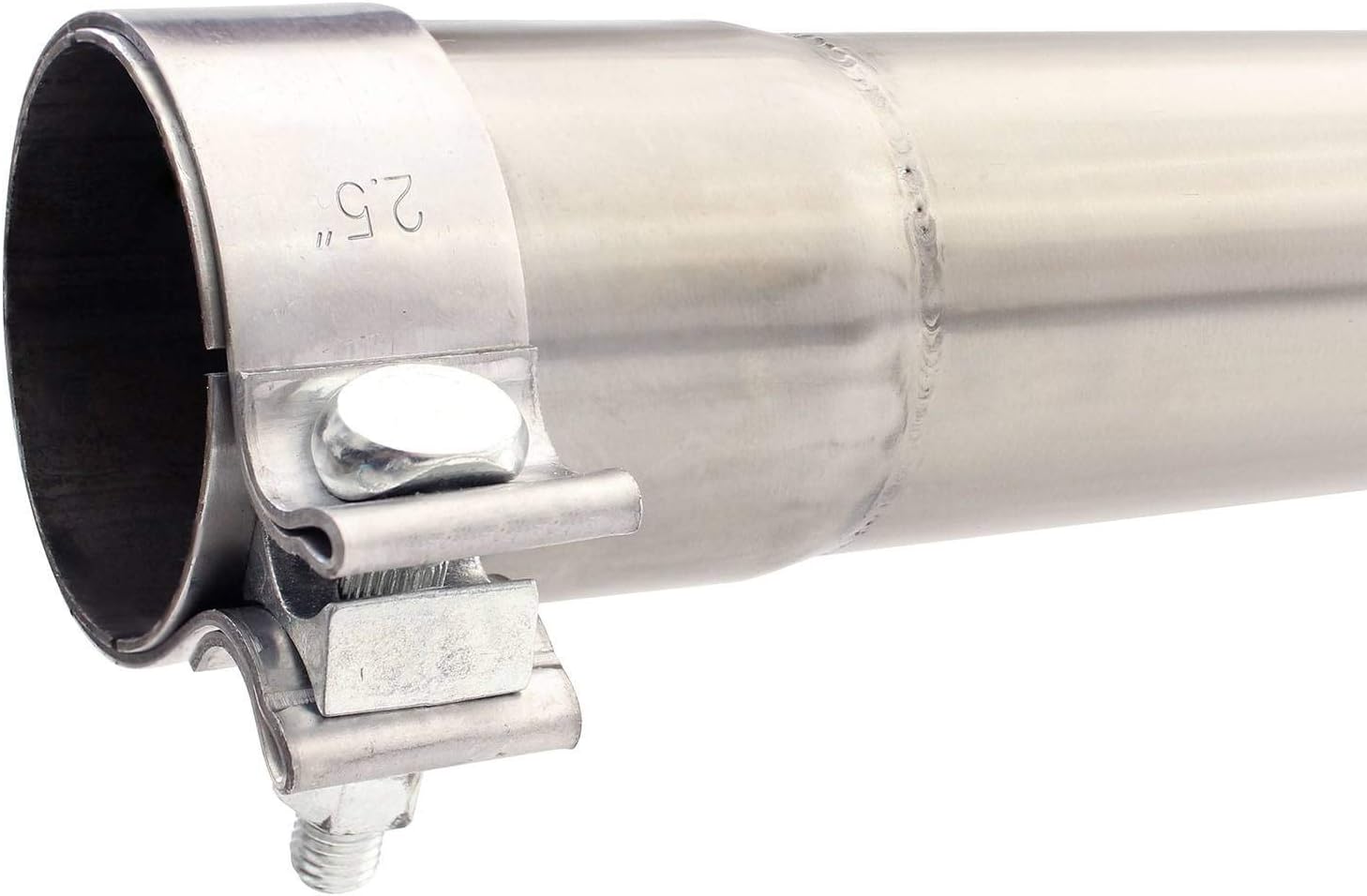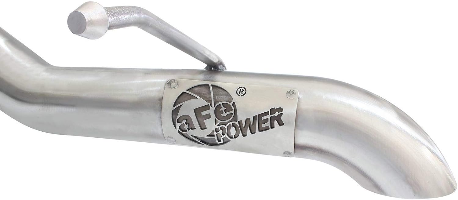 The MACH Force-Xp Cat-Back Exhaust System, crafted from 2.5-inch mandrel-bent 409 stainless steel, ensures maximum flow and minimal turbulence, enhancing horsepower, torque, and throttle response. It features a 14-inch high-flow muffler for an aggressive sound, positioned before the rear axle for improved climbing angles. This system may produce a slight drone in certain applications due to the short muffler. It includes a Hi-Tuck Tip for extra clearance during extreme climbs or descents and an extension pipe for fitting both 2 and 4-door Wranglers. OE-style bayonet hangers maintain stability during high vibration and heat, with a bayonet tip ensuring an OE-style fit. The performance muffler delivers a deep, powerful sound upon acceleration while keeping idle smooth. The driver-side exit location is ideal for adding an on-board air compressor system. Compatible with aFe Power's Glide Guard (46-79001).