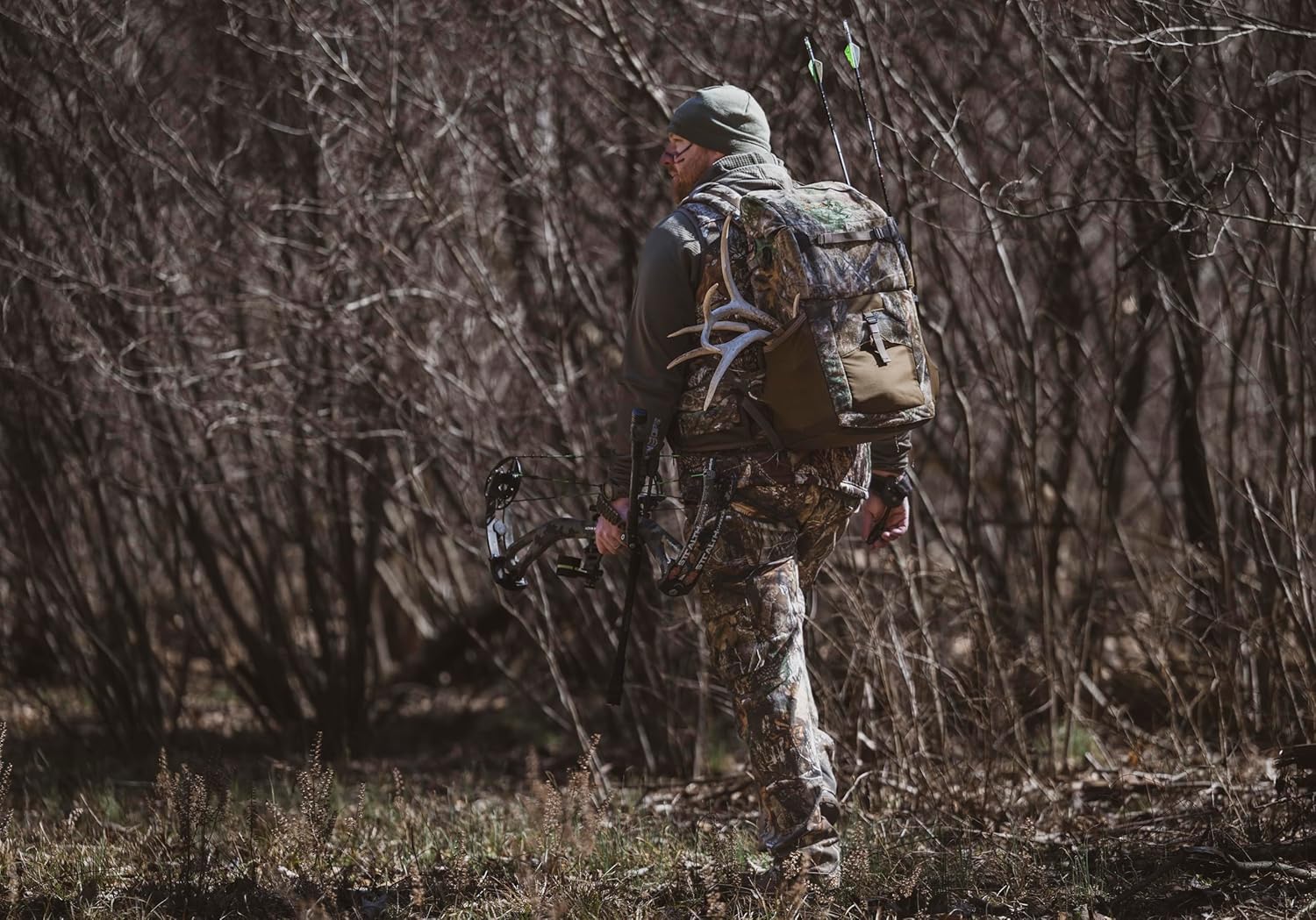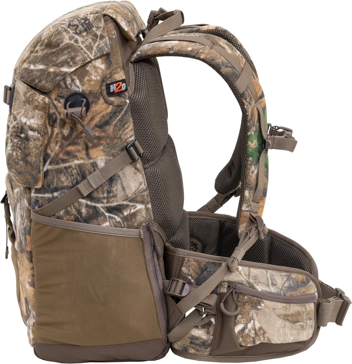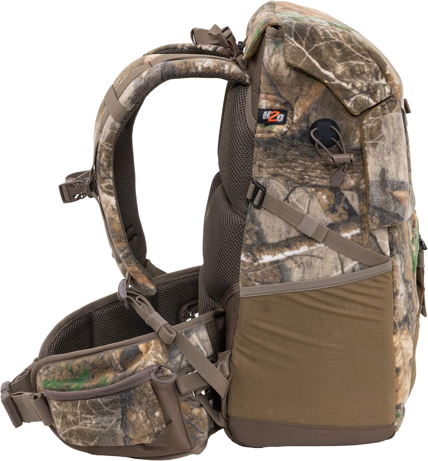 The Impulse is an innovative ultra-quiet hunting pack. Featuring a fleece exterior and a suede fabric interior, the Impulse will keep your movements quiet when reaching for your favorite deer call or adding that extra layer on a crisp fall day. The fleece liner is ALPS new DEADQUIET™ fabric. This fabric is constructed of an outer fleece with a polyester backing and incorporates a membrane between the two fabrics to help keep out moisture. The Impulse features a zipper-less main compartment allowing the hunter to access items quietly and easily. A series of magnets and an aluminum hook secures the top lid when needed. Perfect for a ground blind or the tree stand, the flat-bottom structure allows the pack to stand up independently. Other hunter-friendly features include Multiple interior mesh pockets for organizing gear, an ambidextrous quiver holder, two deep side pockets, a drop-down pocket to carry your gun or bow, a two-piece adjustable waist belt with pockets, and a hydration pocket with two side ports.