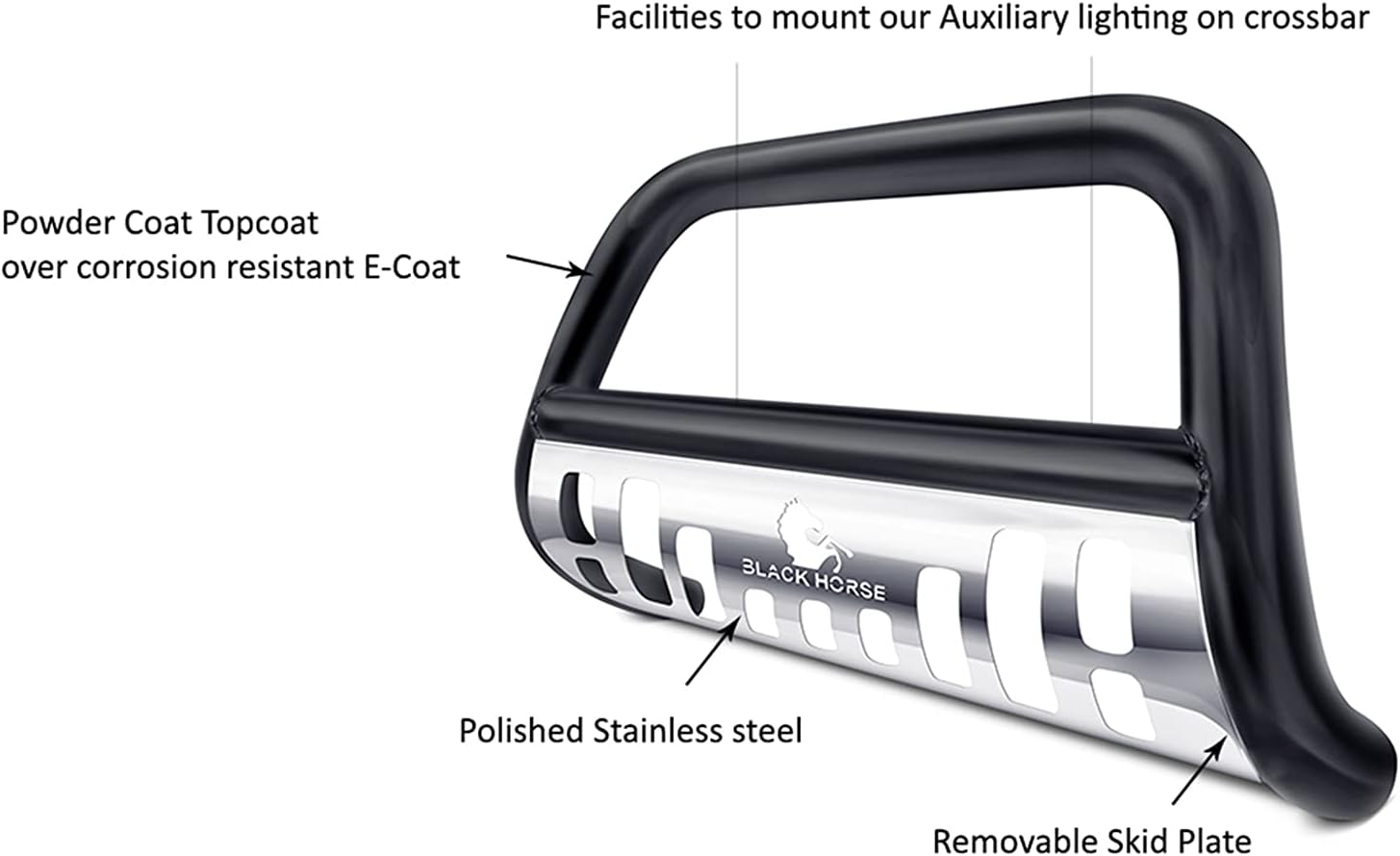 Black Horse Bull Bar Skid Plate Black Compatible with 2001-2008 Ford Ranger|2001-2010 Mazda B2300-CBBS-FOB1501SP