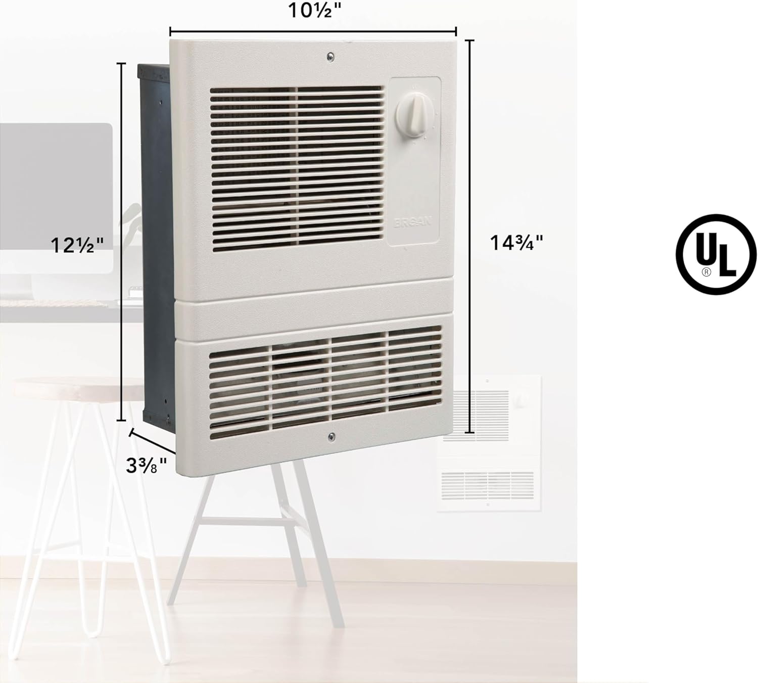 Product Description Upgrade your home with Broan-NuTone's High Capacity Wall Heater! This wall heater is perfect for areas prone to high heat loss such as lobbies, entrance ways, or vestibules. It is designed with a white grille that has contemporary styling with radius edges, straight louvers, and subtle contours for a clean, attractive appearance. It includes an adjustable, front-mounted thermostat to offer a simple and easy way to control the level of heat. This heater has a rapid warm up time due to an efficient Alloy heating element that provides comforting heat in seconds. The quiet, thermally protected motor shuts off in the event of overheating and the transverse blower circulates heated air downward for optimal room warming. This unit is UL listed to ensure safety. It's factory wired for 1500W at 120V AC and easily converts to 1500W at 240V AC. This heater is meant to serve as a heat supplement and not serve as your central heat source. Cozy up in your home with Broan-NuTone's Wall Heater, measuring 14.75" x 11.6". From the Manufacturer Since 1932, Broan-NuTone LLC has led the industry with forward-thinking residential ventilation products, unsurpassed built-in convenience products and superior customer service. While global expertise plays a critical role in Broan-NuTone's ability to being able to meet and exceed the needs and desires of homeowners and designers alike, Broan-NuTone is very proud of the fact that over 80 percent of their products sold in the United States are designed, engineered and manufactured in the United States with U.S. and imported parts. Manufacturing operations in the United States are located in Hartford, Wisconsin and Cleburne, Texas, with customer and technical services located in Hartford and in Cincinnati, Ohio. Broan-NuTone is committed to developing revolutionary products that improve the indoor environment as well as implementing procedures to preserve the outdoor environment. Broan is the industry leader of range hoods, ventilation fans, heater/fan/light combination units, Indoor Air Quality (IAQ) Fresh Air Systems, built-in heaters, whole-house fans, solar powered attic ventilators and trash compactors. NuTone holds major market positions in door chimes, central vacuum systems, stereo intercom systems, home theater speakers, medicine cabinets, ironing centers, ceiling fans and ventilation fans. BEST range hoods are the "Ultimate in Kitchen Ventilation” featuring state-of-the-art performance and Italian design.