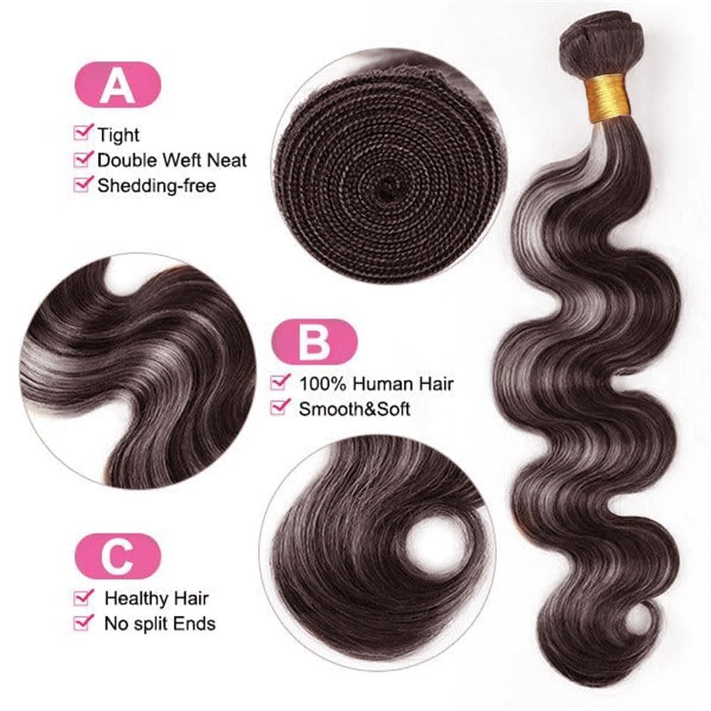 Ratheinhi Human Hair Bundles~ Give You a Better Experience!1.Human Hair Bundles Material:Unprocessed Brazilian Virgin Human Hair.Soft And Full,Tight and Night .2.Human Hair Extension Type:P4/Grey Highlight Chocolate Brown Mix Grey Human Hair Bundles.3.Human Hair Bundles Texture: Double Machine Weft, Very Soft And Silky, Full Density.Minimal Shedding, No Tangle, Minimal Smell, Easy to Care, Last Longer.4.Human Hair Extension Length: 8 Inch to 30 Inch Hair Bundles, True to Length Water Wave Bundles.When You Measure the Hair Bundle,Please Stretch the Wavy to Straight.5.Human Hair Extension Weight: 95-105g/Bundles,True to Weight.300g Total in the Package. Usually 3 Bundles Can Complete A Hairstyle.FQA:Q1:How to Avoid Tangling or Falling Off Hair?A1:Your Hair Extensions May Become Tangled Due to Dryness, Accumulation Of Grease and Dirt. Wash Your Hair With A Good Shampoo and Conditioner, and Gently Comb Your Hair With Your Fingers. Make Sure to Clean and Trim at Least Once a Week.Q2:How Many Bundles Do I Need For a Full Head?A2:Normally 3 Bundles Are Enough For a Full Head.Q3:Can the Hair Be Dyed or Bleached?A3:Yes, Our Hair are Can Be Dyed, Bleached and Permed. However, Frequently D yed and Permed W ill do Harm on Hair, Even Destroy Hair. We Suggest That You Go to The Professional Hair Stylist to Help You.It Recommends Using a Temperature Between 150-180 Degrees Celsius.