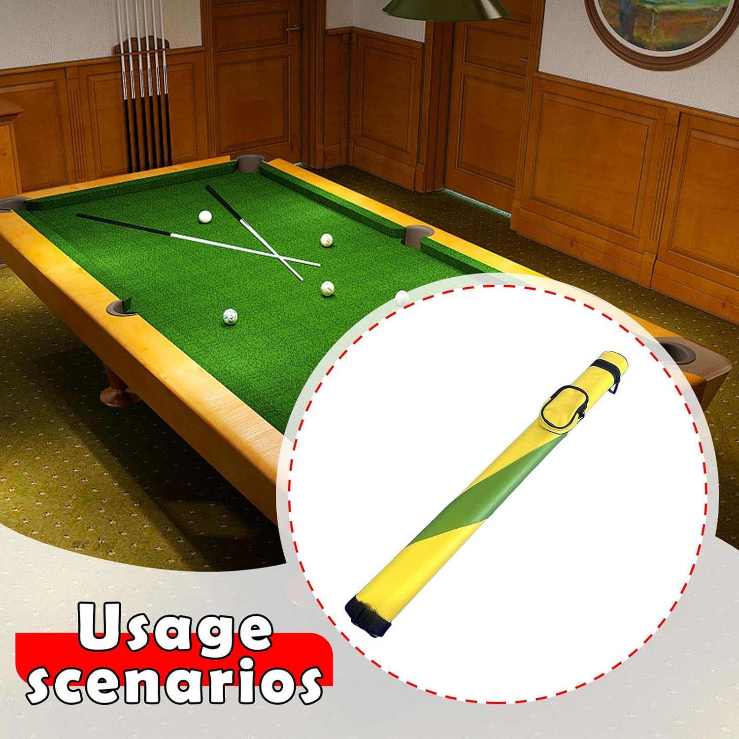 Description: - 【Spacious Storage】: This 1x1 pool can hold 1 complete 1/2 pool cue (hold 1 butts and 1 shaft). There is a small pocket on the outside to store cue chalks and other accessories (Only case, NOT including pool cue) - 【Premium Material】: The billiard rod case is made of premium PU leather material, wear resistant, waterproof, scratch resistant, sturdy, and ensures a long time to use - 【Portable Design】: The billiard rod storage box features a portable shoulder strap, easy to carry. Smooth zipper closure, easy to put and access. Size approx. 83cmx9.5cmx8.5cm/32.68inchx3.74inchx3.35inch - 【Protection Box】: The billiard rod carrying case is impact resistant and shockproof, can effectively protect your cue from dust, scratches, collision and damage during transportation - 【Nice Gift】: The simple and stylish pool cue organizer is a nice gift choice for billiard enthusiasts, it can store your billiard sticks in an orderly and reliable mannerSpecification: - Material: PU leatherSize Chart:83cmx9.5cmx8.5cm/32.68inchx3.74inchx3.35inchPackage Includes:1 PoolNote:Please allow slightly errors due to manual measurement and different monitors.