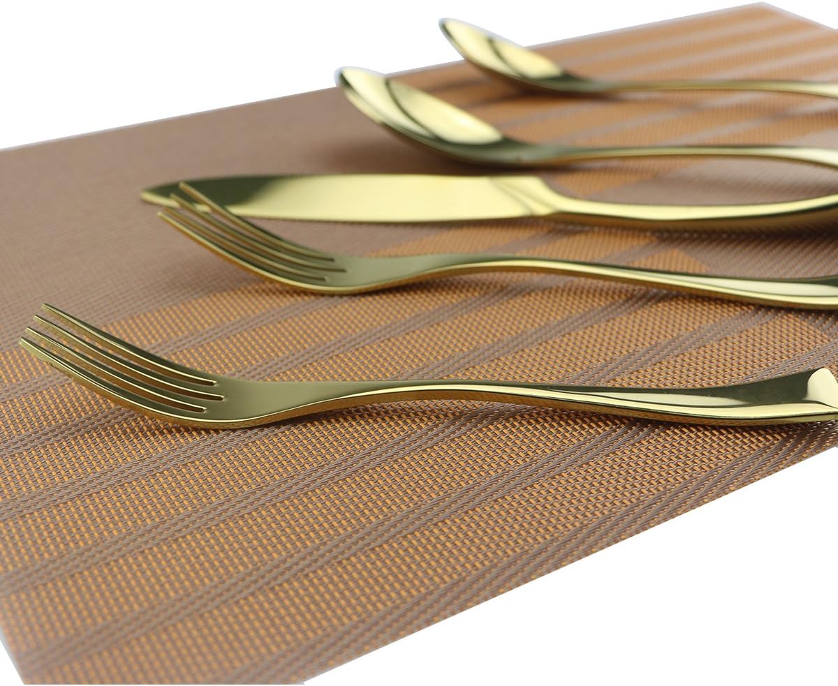About Products services If you have any problems with your purchase, please email us and we will respond in a timely manner After receiving the items, if you have any problem contact us and we will solve the issue to your satisfaction About Size Dinner Knife Dimensions: Length: 22cm / 8.66inch Dinner Spoon Dimensions: Length: 21.5cm / 8.47inch Dinner Fork Dimensions: Length: 22cm / 8.66inch Dessert Fork Dimensions: Length: 20cm / 7.87 inch Salad Spoon Dimensions: Length: 20cm / 7.85 inch About cleaning Use neutral detergent to flush it, Pls never use strong alkaline or strong oxidizing chemicals wash them.After cleaning your flatware, Please make it dry and keep the tableware clean and dry.