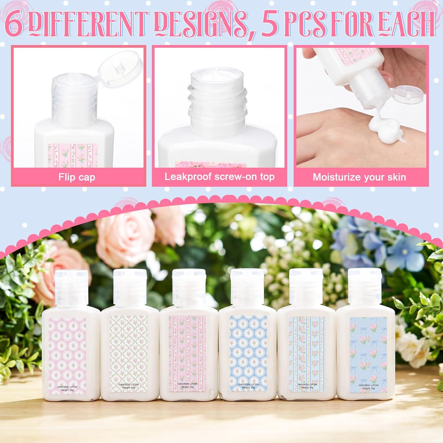 Features: Travel Size Convenience Everywhere Designed for on-the-go ease, these travel size sunscreen packets fit seamlessly into any bag or pocket. Their portable size ensures your guests are always prepared for sun protection, no matter the destination. Elegant Design Meets Functionality The octagonal bottles not only look sophisticated but are also functional. This design makes the mini sunscreen an elegant accessory that complements any setting, effortlessly merging style with practicality Specifications: Material: sunscreen Color: multicolor Size: 30 ml Package includes: 30 x Sunscreen Notes: Manual measurement, please allow slight errors on size. The color may exist a slight difference due to different screen display Our product is not suitable for sensitive skin. Test whether there is any allergy on a small part of your skin before use