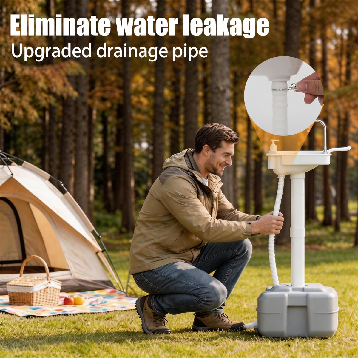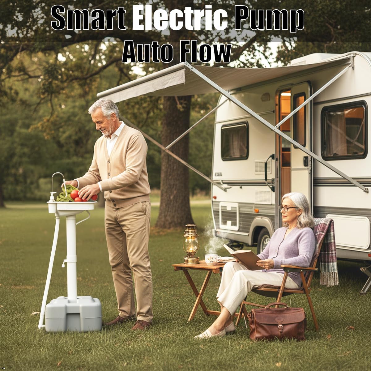 Experience a whole new way to stay clean outdoors with our Portable Sink Hand Wash Station. Whether you're an avid camper, an RV traveler, or a job site worker needing a reliable cleaning solution, this versatile Camping Sink has you covered. Featuring a spacious 20L tank, electric pump, stainless steel faucet, built-in soap dispenser, and towel holder, this all-in-one Outdoor Sink brings the convenience of indoor hygiene to any location – from remote campsites to busy construction sites.