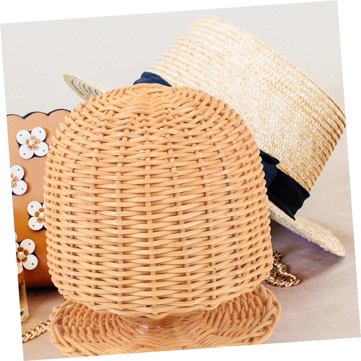 DescriptionMade of rattan material, , rust. This dome shape design hat cap stand makes your hat look more attractive and suitable for decoration or display, and also good for displaying wigs or hats to protect them from distortion. Make your desktop much tidier and orderly.Features--Color:As Shown--Material:Rattan--Size:17.00X16.50X16.50cm/6.68X6.48X6.48inPackage Including1 x Hat Display Stand