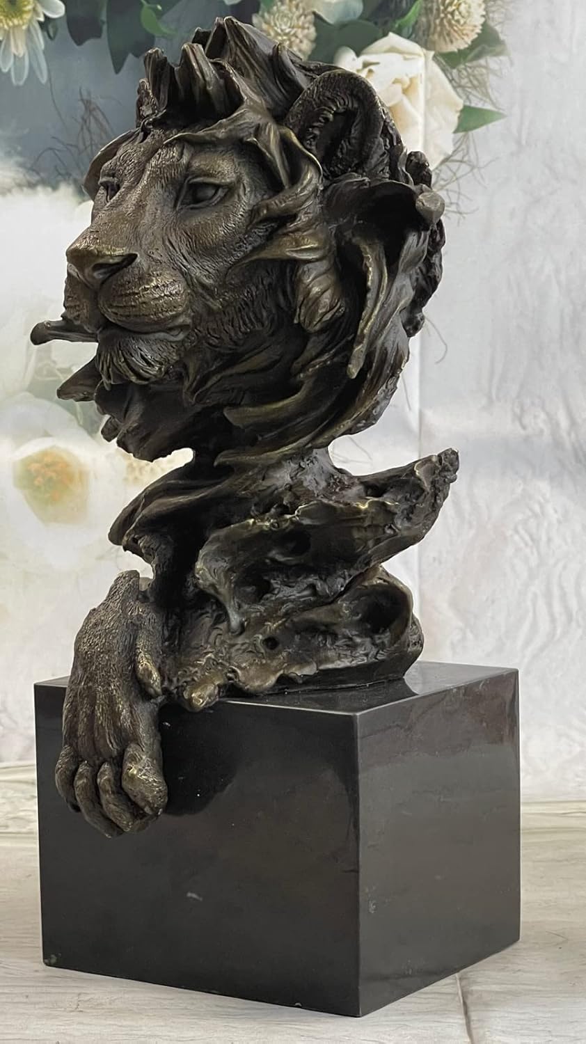 With stealth and breathtaking beauty, this Male Lion peers deep into thedistance, instilling a sense of respect and exuding natural beauty.This bronze bust of a Lion captures the true characteristics andlife like qualities of this animal beautifully. The presentation ofthe bust is exquisite as it presents itself with pride. The bust hasamazing detail which the artist has captured by creating impressionsin the bronze acting as the spotted coat on the gorgeous feline. Thissculpture will look great in any home,office, or studio. It was castusing the "Lost Wax Method" it has a brown patina and is mounted on amarble base and is signed Barye. Condition: This sculpture is in perfect condition.Bronze Dimensions with Marble Base: Height 13" x Width 6"Marble Dimensions: 5" X 4.5"Height without base: 11"Weight : 16 LBSInventory : 52YDW2316225A++