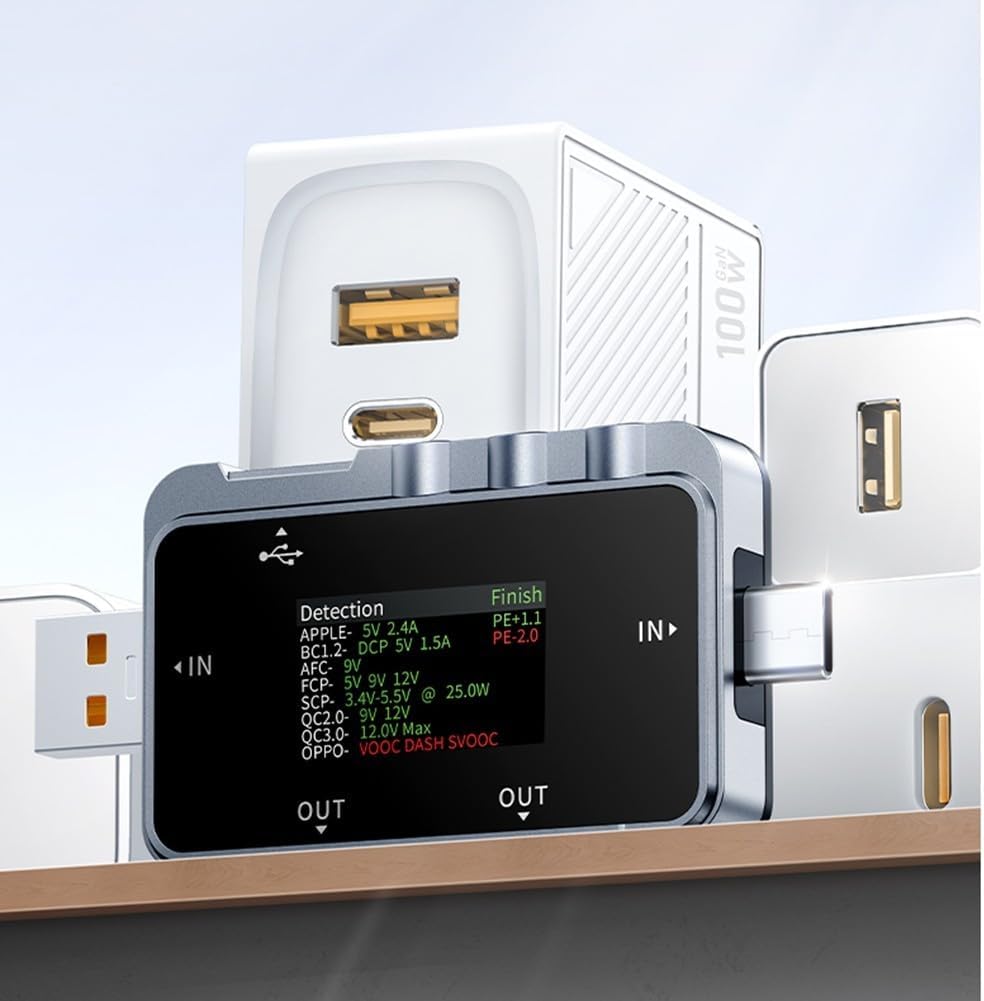 Features:The FNAC-28 USB tester is a multi-function USB current and voltage meter, and also a fast charging activation device for mobile communication terminals.It has a full-color, ultra-wide viewing angle TFT LCD display, and integrates multiple interfaces, including USB-A and Type-C male and female connectors, wide compatibility.It uses an external 16-bit ADC chip with high measurement accuracy.The device can measure the power or power consumption of USB interfaces, mobile phone chargers, USB drives and other products.It can also measure the charging power of mobile phones, the input and output of mobile power supplies, and perform fast charging protocol tests on chargers.Specifications:Part name: FNAC-28 USB testerMaterial: As shownColor: As shownModel: FNAC-28Display: 1.06-inch color displayMonitoring voltage: 4~24VMonitoring current: 0~6.5AMonitoring power: 0~156WDetection protocol: 1QC2.0 5V 9V 12V 20V; 2QC3.0 3.4-20V; 3FCP 9V 12V 20V; 4SCP 5.5-6.0V; 5AFC 9V 12V; 6VOOC/WARP; 20V; 7SVOOC 1.0; 8SVOOC 2.0Cable strength: supportDetection of for DASH cable: supportSoft for DASH cable: supportSoft 2.4A: supportBrightness adjustment: supportTimeout setting: supportTemperature symbol: ℃ and ℉ switchLanguage: Chinese and EnglishFirmware update: supportSize: 73×36×12mmPackage content:FNAC-28 USB tester*1User manual*1Color box packaging*1