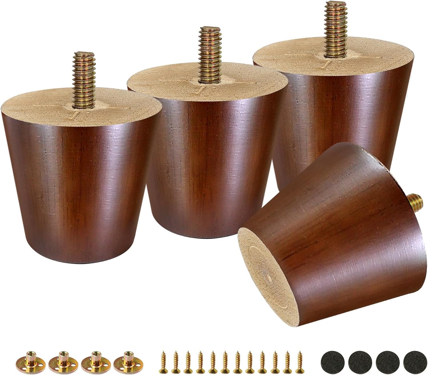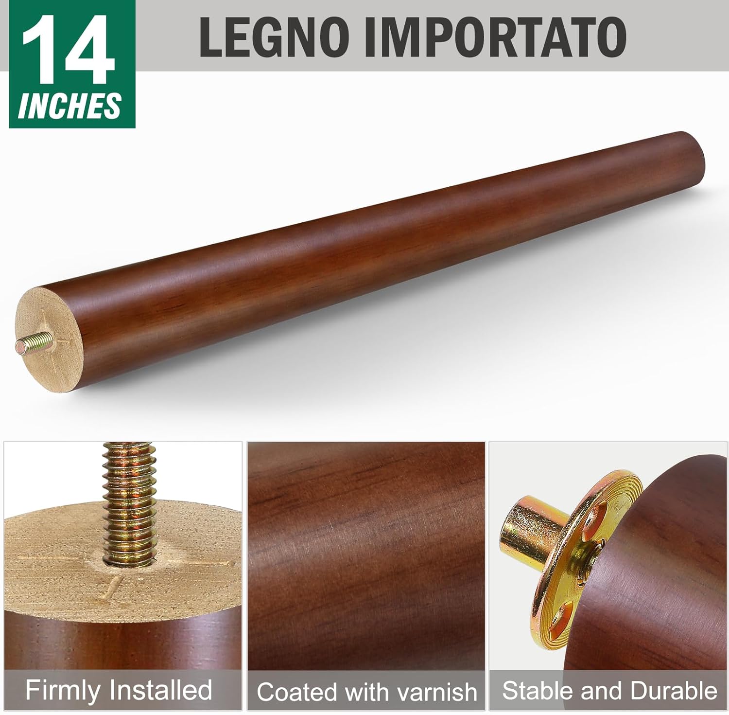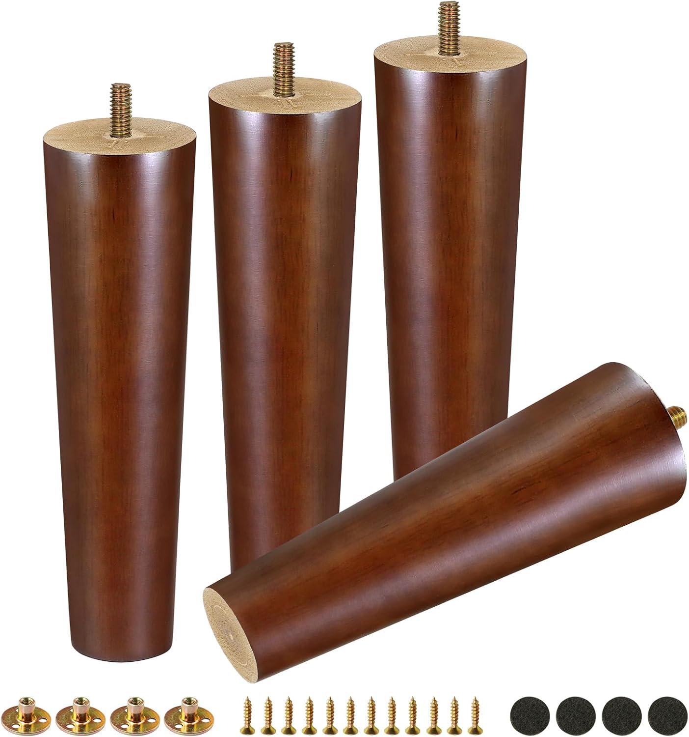 Features: Smooth edges without burr avoid pricking the hand for safety operating Rubber floor pads can protect your floors from marring and scuffs. Specification: Material: Solid Rubber Wood Colour: Brown Type: Straight Conical Top diameter: 2.3" / 58mm Bottom Diameter: 1.5" / 38mm Hanger Bolt: 5/16" / 7.94mm The height for wood part: 14" / 35cm Each Leg Weight Capacity: Approx.250lbs / 115kg Package Content: 4 x Wood Furniture Legs 4 x Rubber Floor Pads 12 x Mounting Screws 4 x T-Nut Warm Tips: 1.Due to manual measurement, please allow 1-2mm difference between actual and manual measurement size. 2.The pictures are taken in kind, and the pictures are as consistent as possible with the real objects, but the colors are slightly different due to equipment, lighting, display and other reasons.
