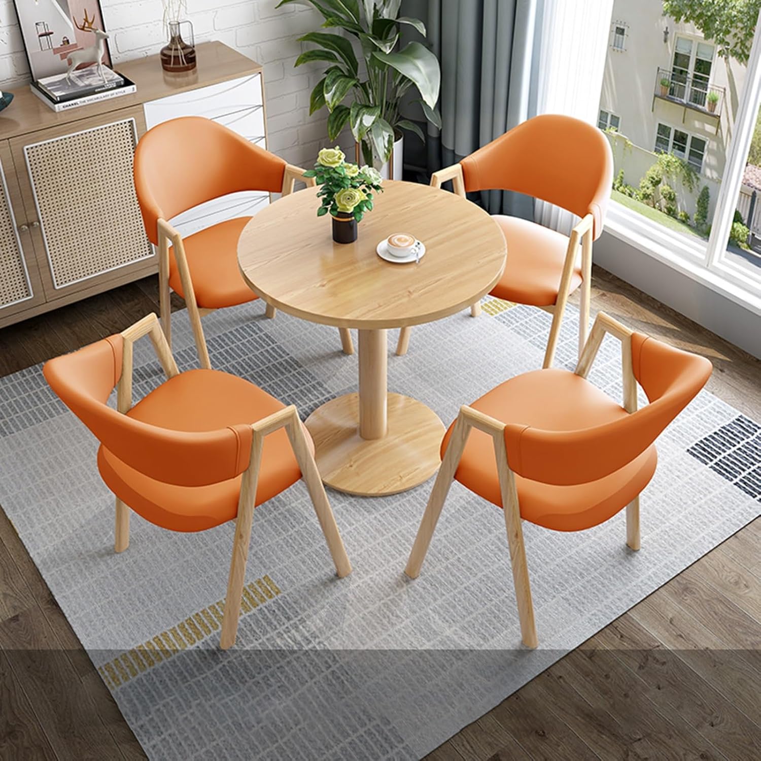 The four-corner frame design of the round dining table set makes the overall structure of the stand stable and firm, simple, stylish and . The chair is thick and , with strong load-bearing capacity and high factor. The sleek design brings a vibrant and fresh feel to your dining room. This dining table set can be used not only at home, but also in kitchens, bars, restaurants and other commercial places. Product Parameters: Product Name: Table and chair combination Color: Light gray , Dark gray , Brown , Orange , Green , Yellow Features: Simple, generous, save space Style: Simple and modern Bracket structure Material: Metall Table shape: Round Desk top material: board Table top diameter: 70cm/27.5in Chairs material: PU Total chair height: 78cm/30.7in Applicable scenes: coffee shop, living room, kitchen, terrace, restaurant, lounge, reception room, office, outdoor, milk tea shop, bakery, hotel, negotiation room, bar, etc. Applicable number: 4 people Packing method: assembly Packing list:1*table,4*chairs (other things are decorations, not included)