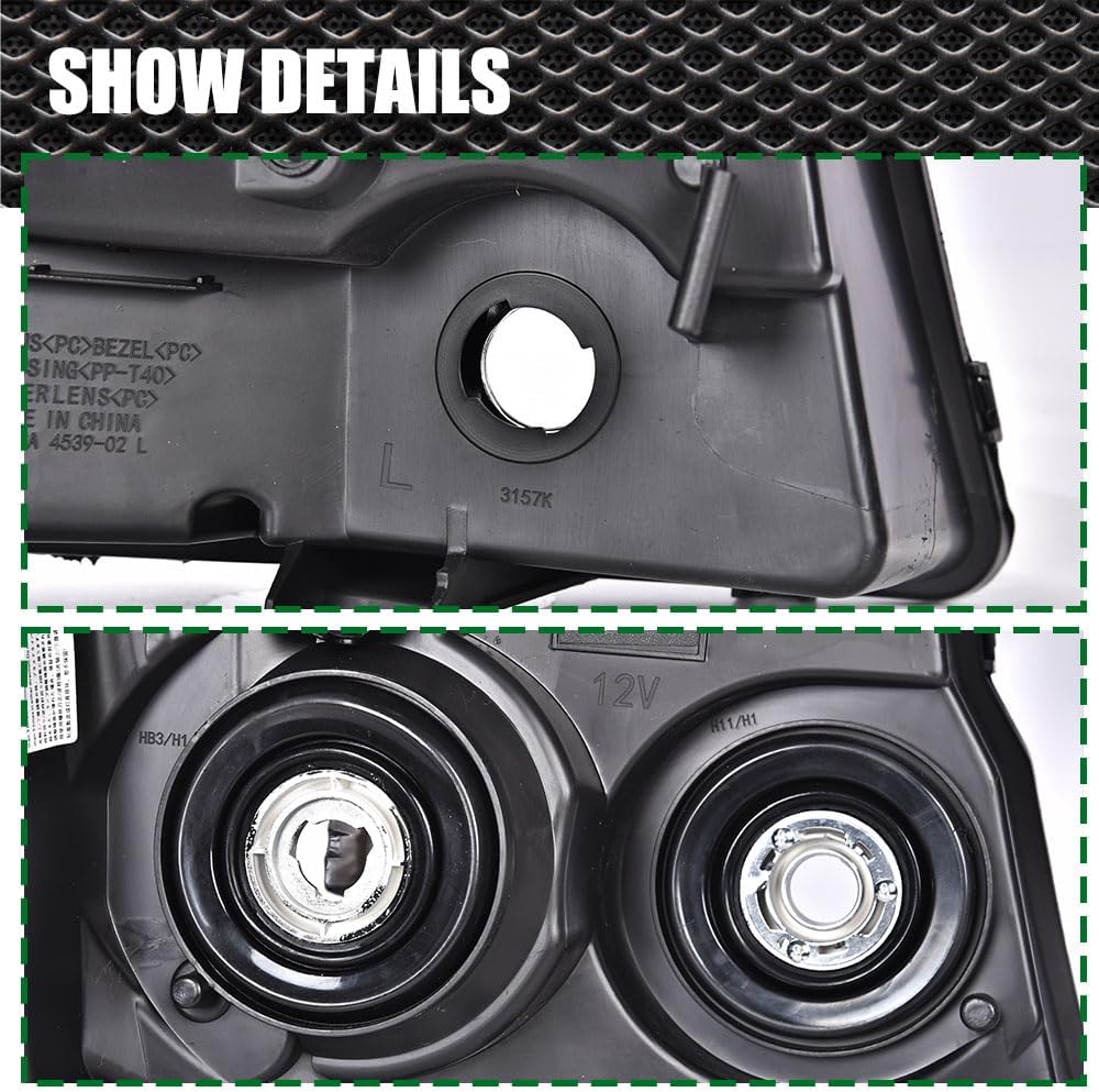 • WATERPROOF: The fully sealed waterproof structure design can make the headlights well prevent external rain and moisture from entering in any bad weather, such as rain, snow, sand, etc. The light adjuster location is different from OE style, pls take a look at the product picture and detail page.