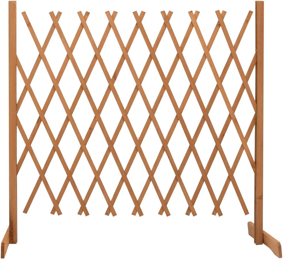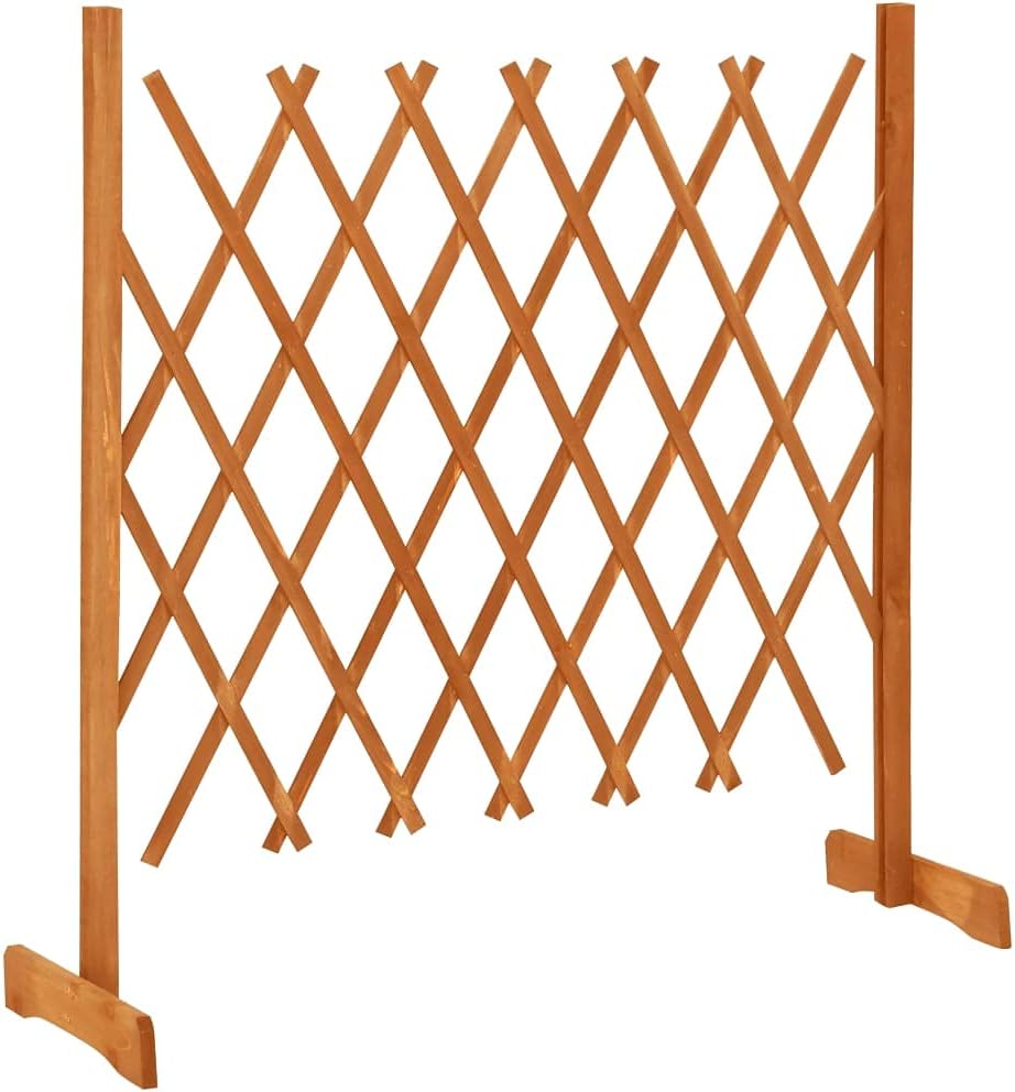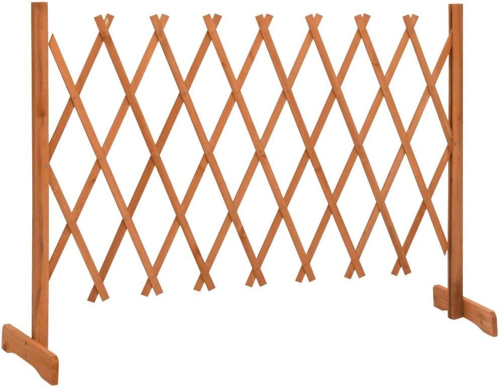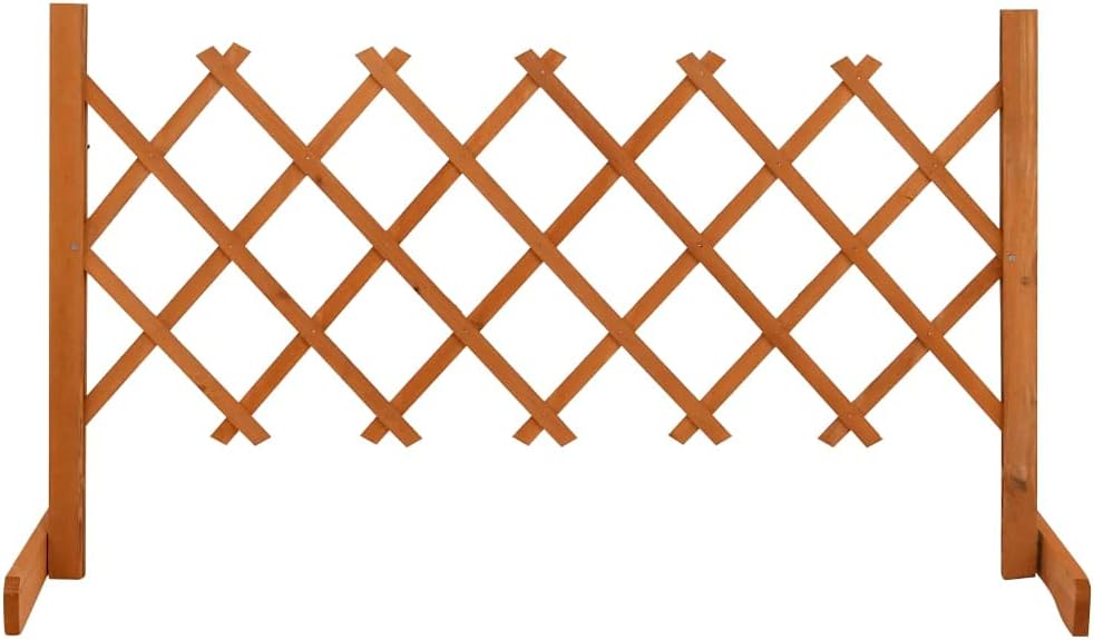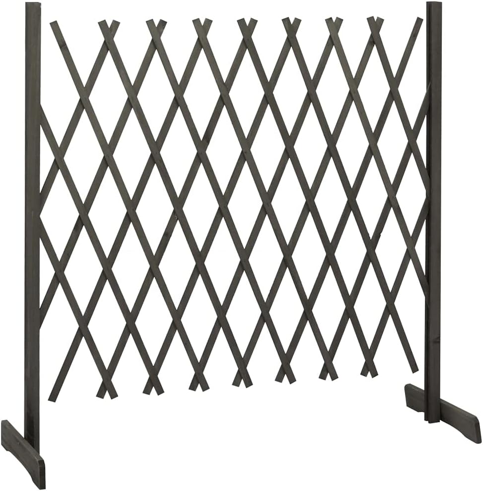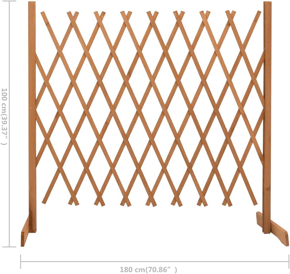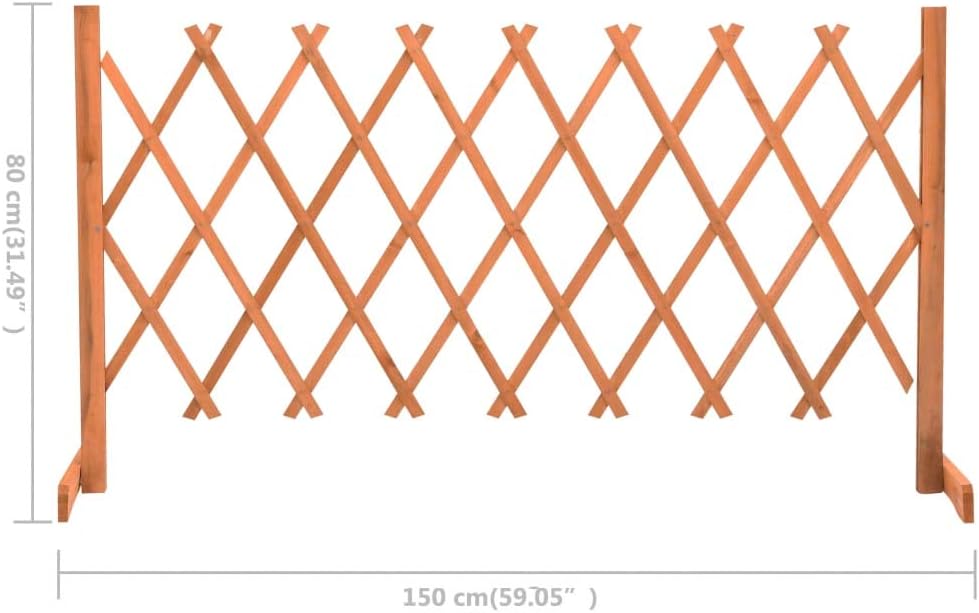This solid wooden trellis fence can be used to close your garden, add privacy, and also support your climbing plants.This fence panel, made of solid firwood, is sturdy and suitable for outdoor use. Each trellis fence can be extended up to 150 cm in width. Its expandable design makes the garden barrier compatible with gardens of all sizes. It also looks excellent along flowerbeds or walkways.Material: Solid firwood with a gray waterbase finishDimensions(fully extended): 59.1" x 31.5" (W x H)Dimensions(unextended): 8.5" x 31.5" (W x H)ExtendableAssembly required: Yes