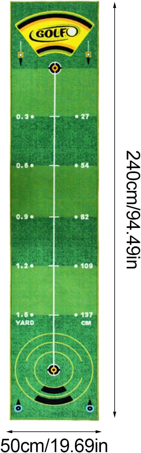 Experience precision practice with our portable Practice Putting Green! Compact, lightweight, perfect for on-the-go use. Soft touch for long-lasting quality. Ideal for single player training. Easily stored for convenience. Specification:Material: NylonProduct size: about 50x240cm/19.69x94.49 inchesPacking List:Golf Putting Mat*1 pieceNote:Due to different lighting and screen settings, the item color may be slightly different from the picture.Due to different manual measurements, please allow a 1-2cm difference in size.