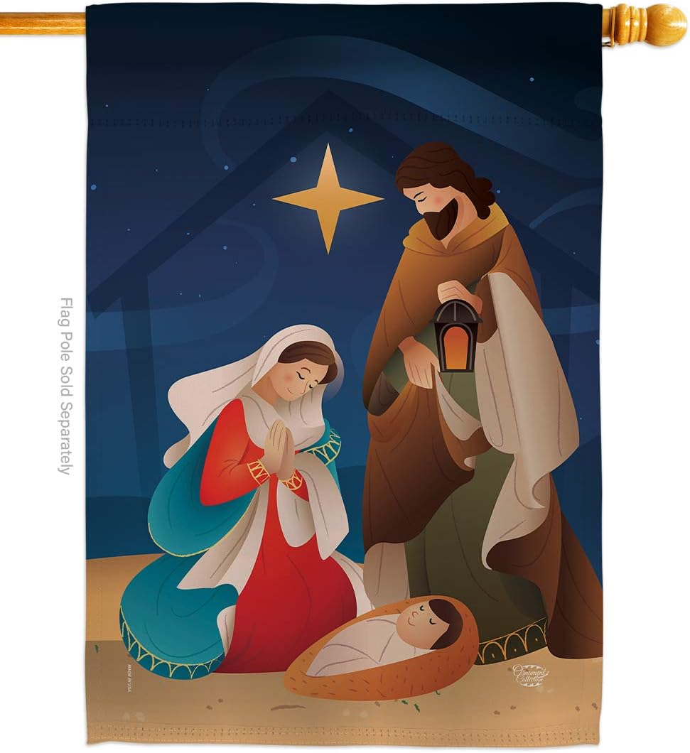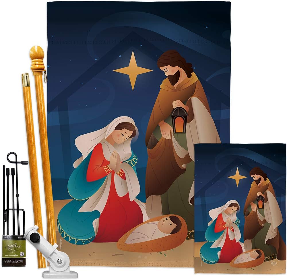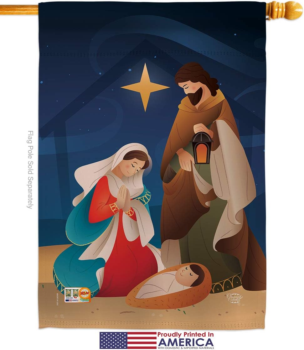 Nativity Beautiful Large House Flag, Wooden Flagpole And Bracket – Wall Mount Complete Set with Wood Banner Dowel with String - 2" x 32" HangerOrnament Collection have variety of House Flag Set for all occasions. Uniquely design for hanging indoor or outdoor use. We are committed to offering you exceptional values. Our customers enjoy displaying our House Flag Set for longer periods. Specification: Theme: Nativity Size: House Flag Set 28" x 40" Size: Decorative FlagPole With Adjustable Angle Flag Bracket Print: Double-Sided Readable: Readable Single Side Material: Weather Resistant Polyester 300 D Stitching: Double Stitched Display: Vertical Hang Type: Sleeve Artist: Brad Whitewood Special Features: Origin: Made In USAPackage Include: 1 pc x Large House Flag 28" x 40" 1 pc x Decorative Flag Pole 1 pc x Adjustable Angle Wall Mount Flag BracketFor more than a decade, we’ve been dedicated to manufacturing flags with no comparison in quality and beautiful designs. Our flags are made with our Pro Guard material that is soft to the touch and designs can be read correctly on the flag. A feature that our customers will love. We are committed to using eco-friendly inks that won’t leave a foot print in our environment. MPN: OC-NT-HS-192260-IP-P3-03-S-US20-OC 92260 92260