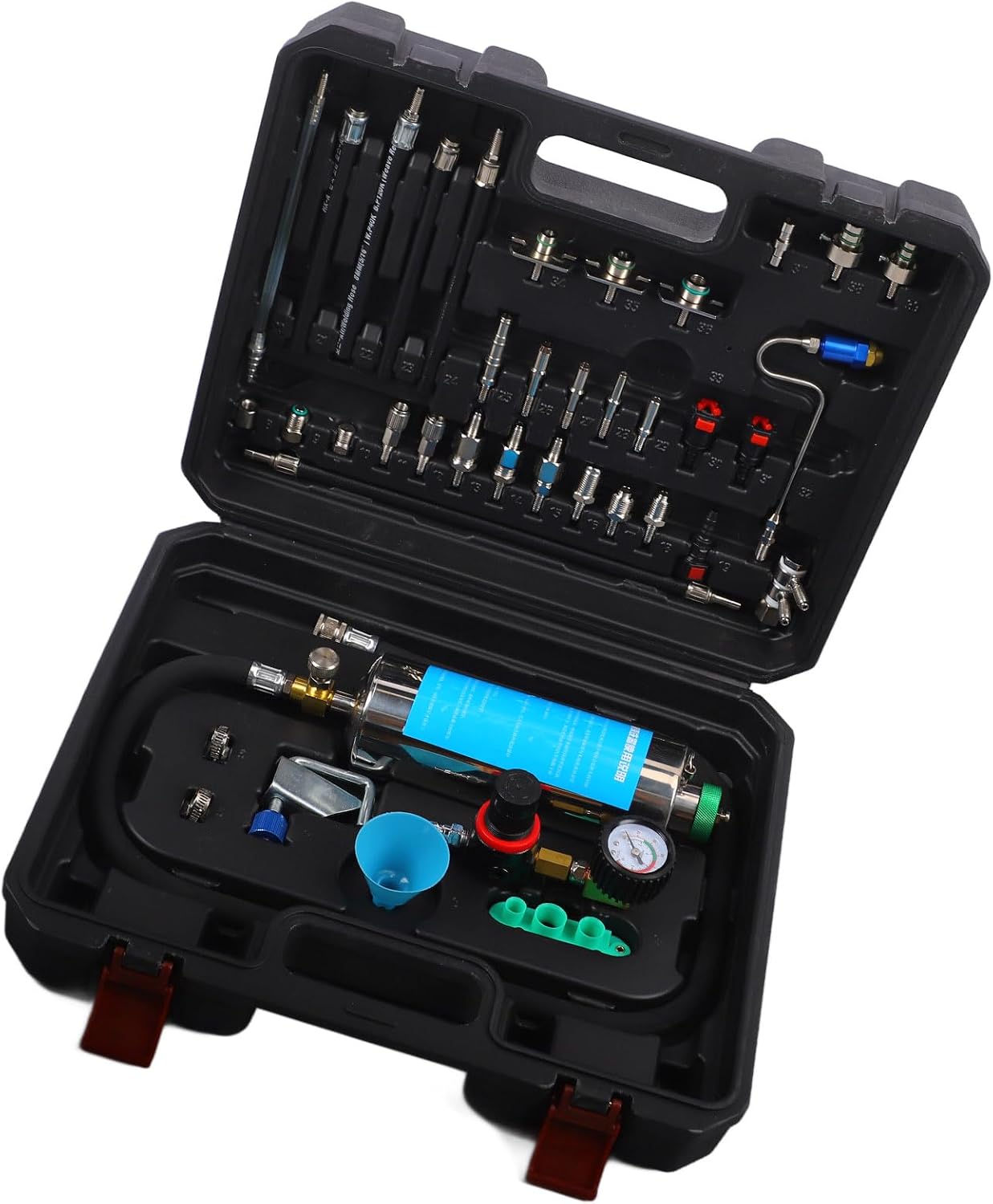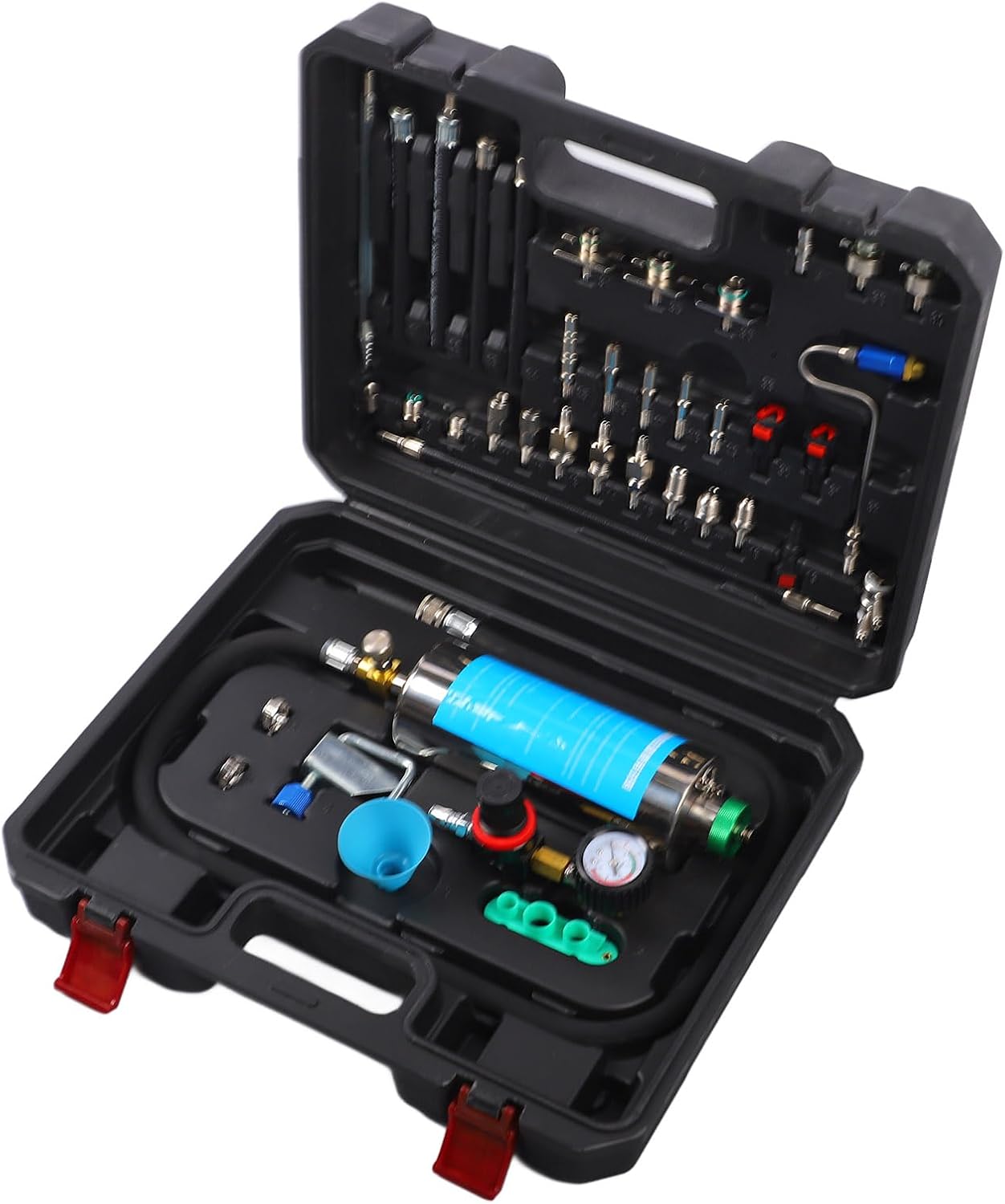 1. Injector cleaner kit: cleaning set for the fuel system of the car, including the hanging bottle, dial, hoses, connections, etc., with complete accessories, practical and practical. 2. High efficiency: Use of efficient cleaning technology that can effectively remove sediments and and thus ensures fuel savings and performance for cars. 3. Han bottle: The hanging bottle consists of a liquid funnel, a cleaning nozzle, a pipe clamp and a atomizer nozzle with a simple structure and simple operation. 4. Several types: This cleaning tool set is available in several versions with different and sizes and is suitable for more car repair requirements. 5. Portable toolbox: Equipped with a portable tool box for storing and protecting these cleaning tools for fuel injection nozzles, which can be used comfortably at any time and anywhere. Technical dataification: Article type: vehicle fuel system cleaning set Material: ABS Application: for cleaning car injection nozzles, , intake luxury valve List of packages: 39 x cleaning tools 1 box