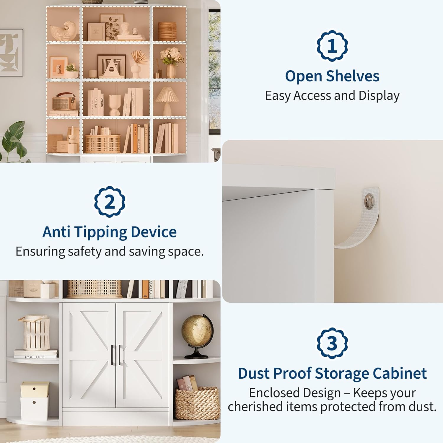 6-Tier Bookshelf with Storage Cabinet and Open ShelvesAre you searching for a bookcase that combines generous storage, modern style, and everyday convenience? Have you ever wished your favorite books and decor could be beautifully displayed and protected from dust, all in one stunning cabinet? Picture how easily you could organize any room with adjustable shelves and a spacious enclosed section for those extras you want out of sight. Wouldn't it be a relief to have something sturdy, safe for your family, and simple to put together—no matter where you need it? Why settle for basic shelves when you can elevate your living space with a statement piece designed for real life?Highlights at a Glance:spacious 6-tier shelvingdust-proof enclosed storageanti-tip for family safetybarn door modern lookavailable in classic colorsquick and easy setupversatile for any roomSpecification:Material: MDFProduct Dimension: 11.8" D x 46.85" W x 74.8" HColor: Black, White, GreyPacking List:1 x Tall Bookshelf1 x Instruction Manual1 x Accessory KitFriendly Note:For safety, please use the included anti-tipping device and place the wooden bookcase on a flat, stable floor.Avoid placing the display shelf in overly humid environments or in direct sunlight to maintain its appearance and durability.Please double-check the measurements to ensure the book case fits your intended space before purchasing.