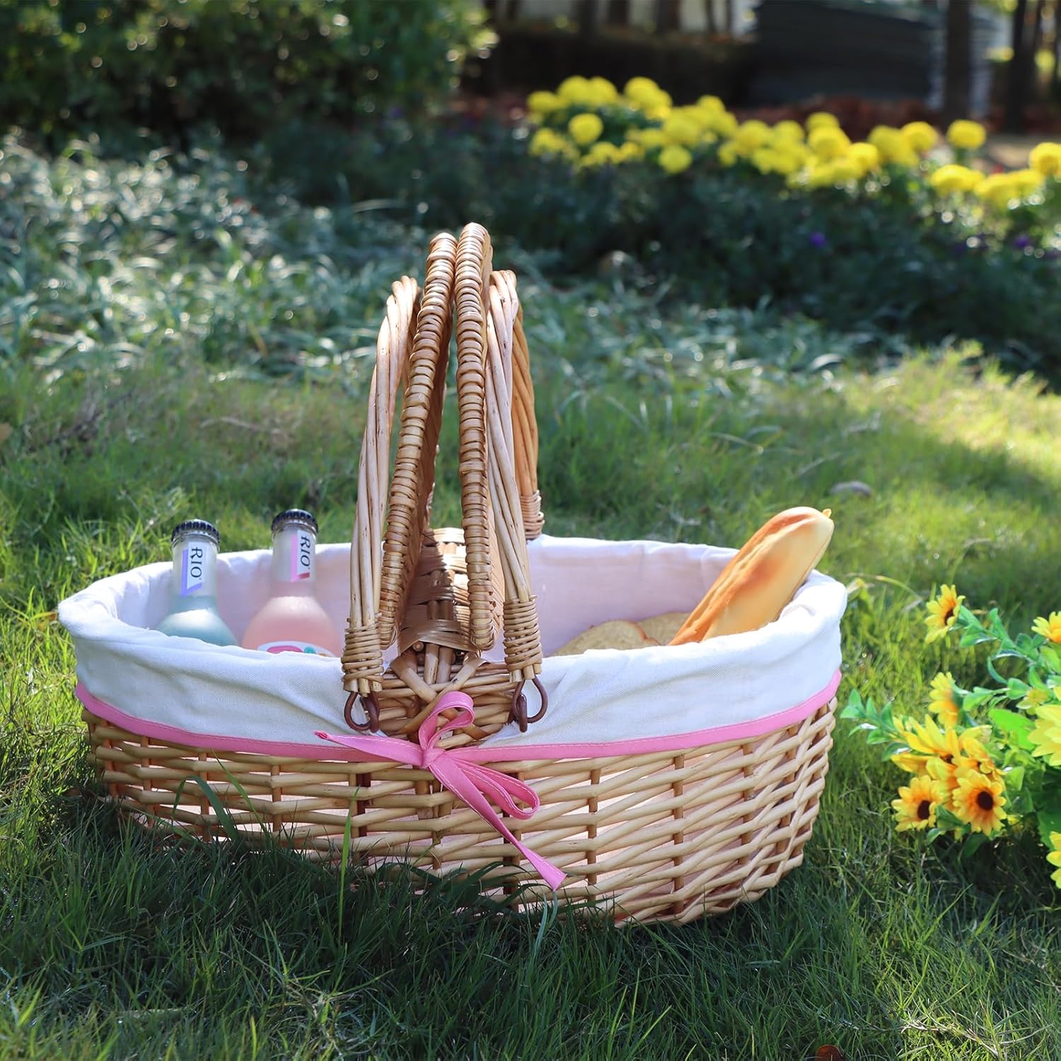 This large wicker picnic basket with lid is expertly handwoven from premium wicker, this storage hamper is a testament to traditional craftsmanship, offering durability, eco-friendly and a timeless aesthetic. Measuring 16" x 12" x 7", it provides ample space to store picnic essentials for two, including fresh fruits, snacks, tableware, and more. The secure lid ensures that items remain protected from dust and spills, making it a perfect picnic basket for 2 as well as an efficient storage solution for everyday use. Its versatile design allows you to use it as a decorative outdoor basket or a chic indoor organizer on shelves or countertops. With built-in features like easy portability and multi-functionality, this wicker picnic basket enhances any environment, from garden parties to home office organization. Additionally, its stylish and durable construction makes it an excellent gift option for birthdays, baby showers, or housewarmings. Enjoy the blend of practicality and elegance with this exquisite, handwoven storage basket that brings both charm and functionality to life