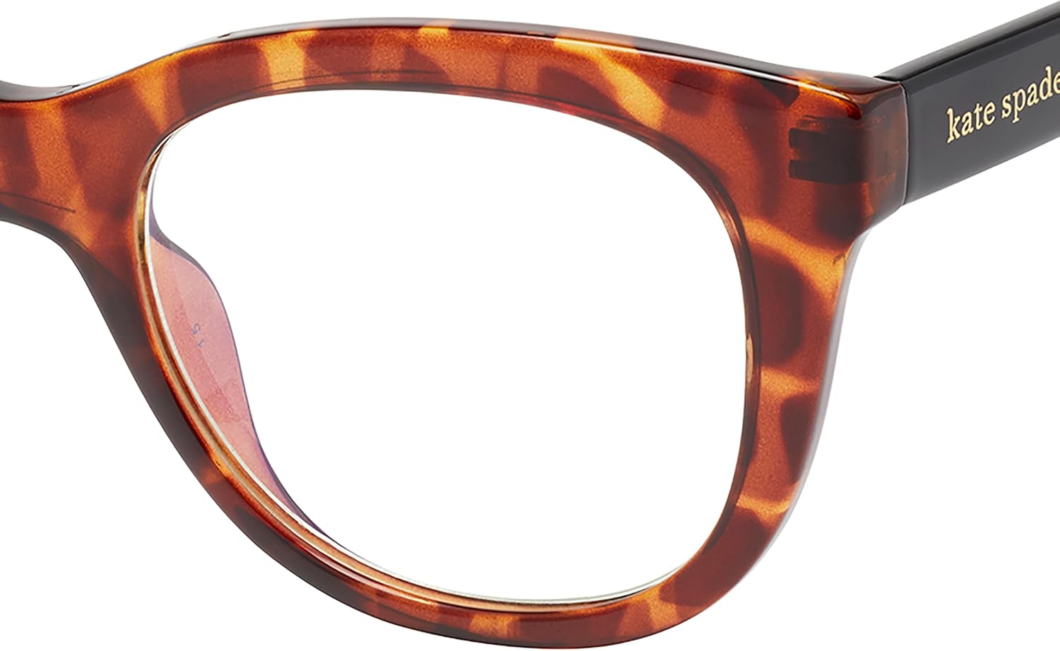 Eyewear made by Kate Spade means you are getting a high-quality piece. This oval style frame is targeted to the female consumer. This frame is made of plastic and the lens is high-quality plastic. To ensure the perfect fit, the size of this eyewear is: 50mm, 20mm, 140mm for the lens, bridge, and temple size