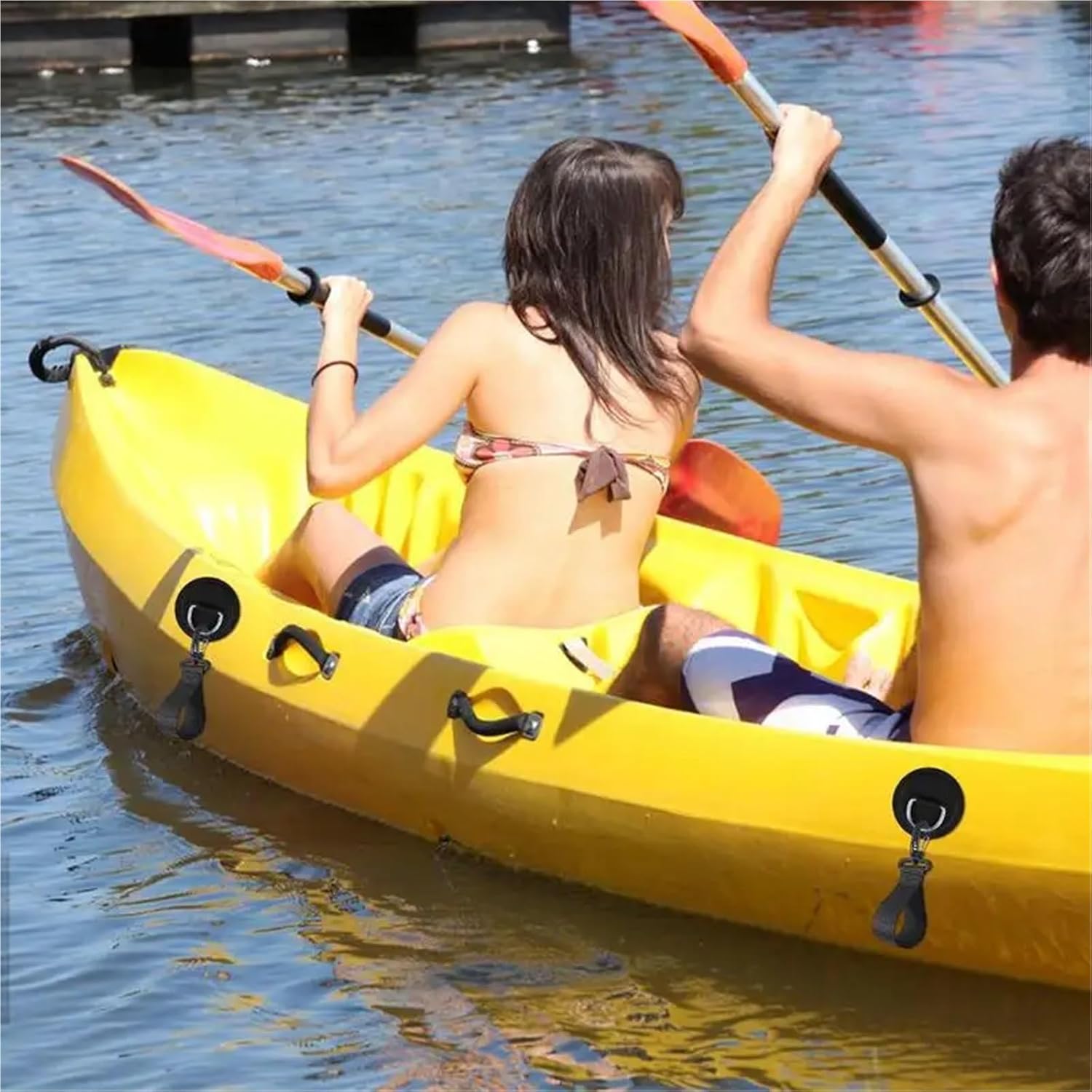 Installation Tip for Optimal Security: Mount the clip within easy reach of your seated position, angled slightly forward so paddles slide in naturally; periodically check mounting screws for tightness during extended trips1. Sturdy Build: Crafted with PVC and stainless steel to prevent rust. High-quality elastic rubber core for secure and flexible fastening, improving kayaking adventure2. Easy to Use: Easily suspends paddle boards from padded eyelets; not only easy to use and install, but also adjustable in length, accommodating various storage items3. Safe Design: Experience the convenience of a Patch Buckle Set, providing a good attachment to secure your paddle on the board for an improved kayaking adventure4. Easily adjusts its length: Easily adjusts its length and is simple to install, enhancing utility by also serving as a storage solution for various items5. Wide Range of Uses: Safely organize your gear on PVC inflatable boats, rafts, dinghies, and kayaks; specifically designed for rope and cargo management