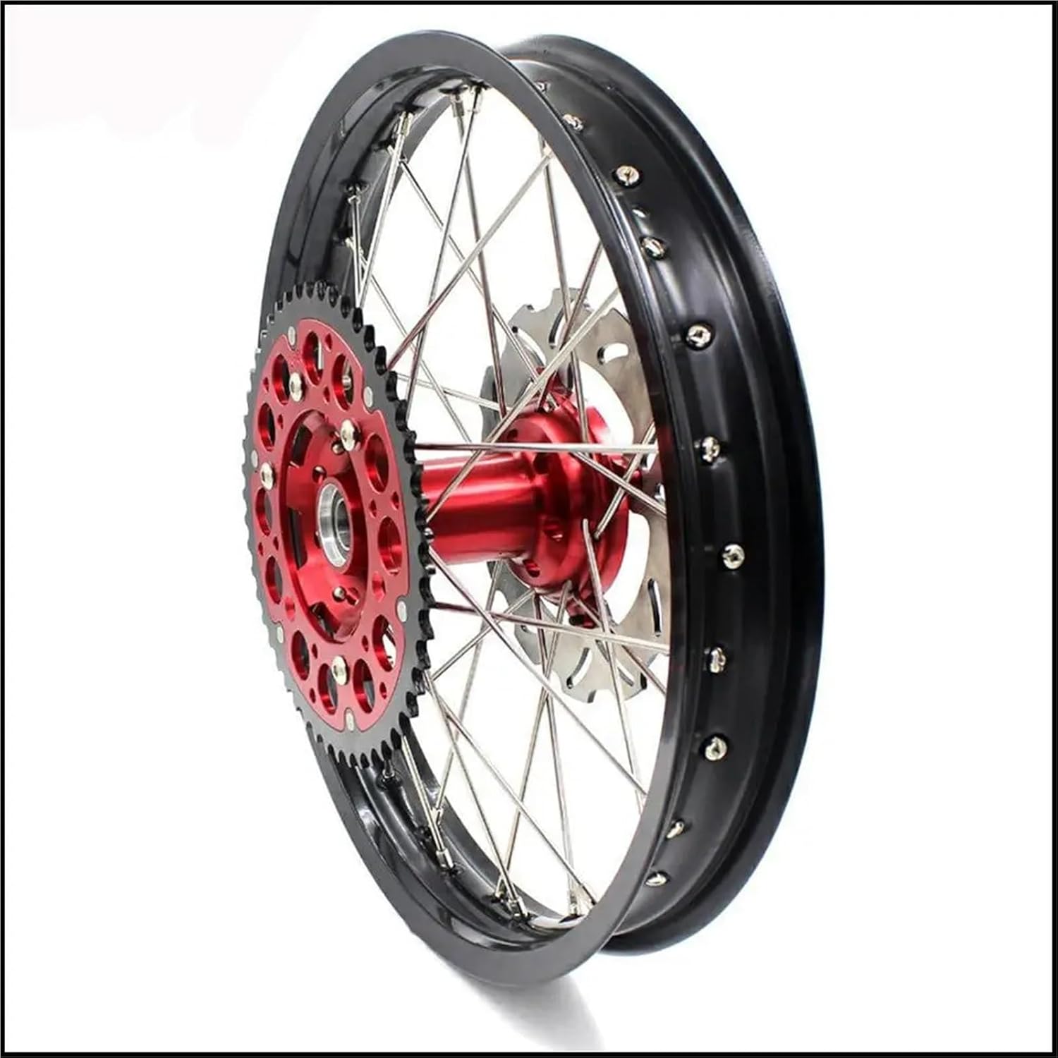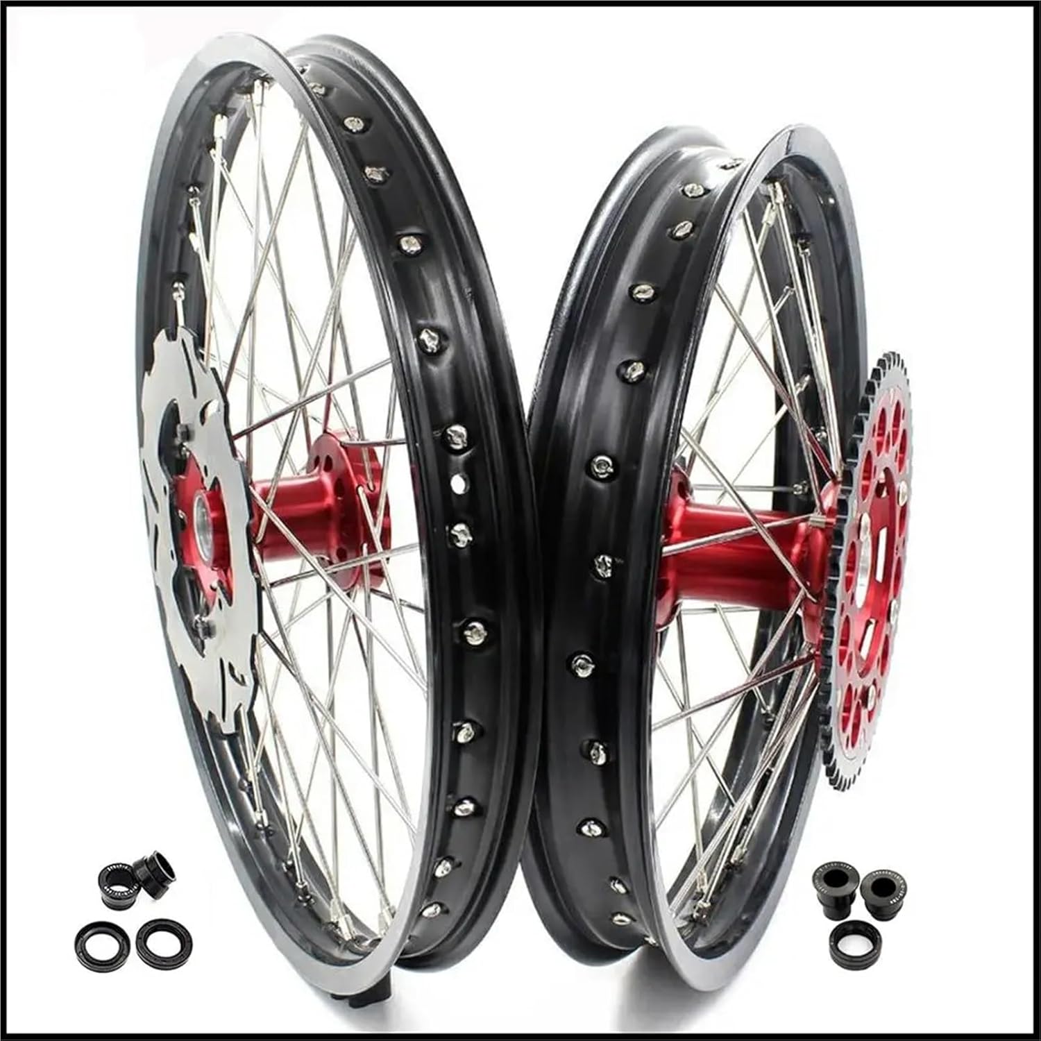 KKE 21/18 ENDUROWHEELS SETFOR Compatible With HONDA+ DISCS AND SPROCKETFITMENTXR400R 1996-2004XR600R 1991-2000THESEWHEELS CANNOT FIT OEM DISCS & SPROCKET BUT THEY CAN FITOEM DISCS SPROCKETFOR CRF250R CRF450R BIKESINTRODUCTION6082T6 ALUMINUM CNC MACHINED HUB7050T6 ALUMINUM RIM304 STAINLESS STEEL SPOKE WITH BRASS NIPPLEFRONT AND REAR WHEEL WITH BEARING SPACER SEALBEARINGS ASSEMBLED SPACERS SEALS PACKAGEDFRONT 240MM BRAKE DISCREAR 220MM BRAKD DISCREAR SPROCKET 50TCOLORREDHUBBLACK RIMSILVER SPOKESILVER NIPPLESILVER DISCSRED SPROCKETSpecial Features : ReplacementItem Diameter : 12inchItem Weight : 13kgItem Height : 58inchItem Width : 29inchItem Length : 56inchModel Name : 21/18 wheelMaterial : AluminumItem Type : WheelsType: : Spoked Wheels setColor: : Red Hub, Black Rim, Silver Nipple, Silver SpokeDisc Size: : Front: 240MM Rear: 220MMSprocket Size: : 50TSurface Finish: : AnodizedRim Material: : 7050T6 ALUMINUM RIMModel: : XR400R 1996-2004, XR600R 1991-2000Material: : AluminumHub Material: : 6082T6 Aluminum HubSpoke Material: : 304 Stainless Steel Spoke with Brass NippleFeature: : Cannot Fit OEM disc and sprocketTraditional Info: : Bearings Assembled, Seals and Spacers are packed