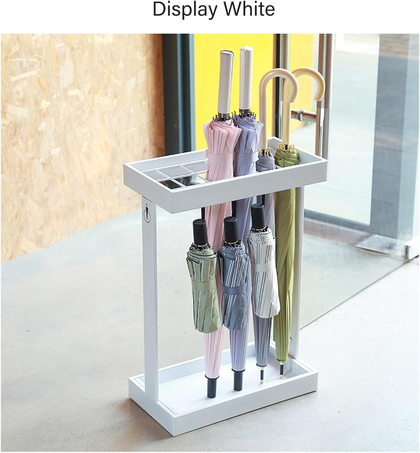 Introducing our sleek and functional square umbrella stand, designed to enhance your home, office, or commercial space while keeping your umbrellas neatly organized. This modern metal umbrella holder features a space-saving design and a waterproof drip tray, making it an ideal choice for entryways, offices, and homes alike. **Product Name:** Square Umbrella Stand **Dimensions:** 42 x 21.5 x 60 cm (16.5 x 8.5 x 24 inches) **Colors Available:** Black, White **Capacity:** Holds up to 12 long umbrellas and 4 short umbrellas **Ideal Locations:** Hotels, lobbies, shopping centers, and more Our stylish umbrella holder not only complements your décor but also provides functionality that meets the needs of busy environments. Its spacious design accommodates various umbrella sizes, ensuring that you always have a place for your umbrellas when you need them. The waterproof base effectively traps excess water, protecting your floors and maintaining cleanliness in high-traffic areas. Whether you are welcoming guests at your hotel, organizing your office space, or simply enhancing the entryway of your home, our umbrella stand offers a practical and elegant solution. Please note that dimensions are manually measured, and slight variances may occur. Additionally, color differences may arise due to monitor variations. Should you encounter any issues upon receiving your product, feel free to reach out to us for assistance. Elevate your space with our square umbrella stand today!