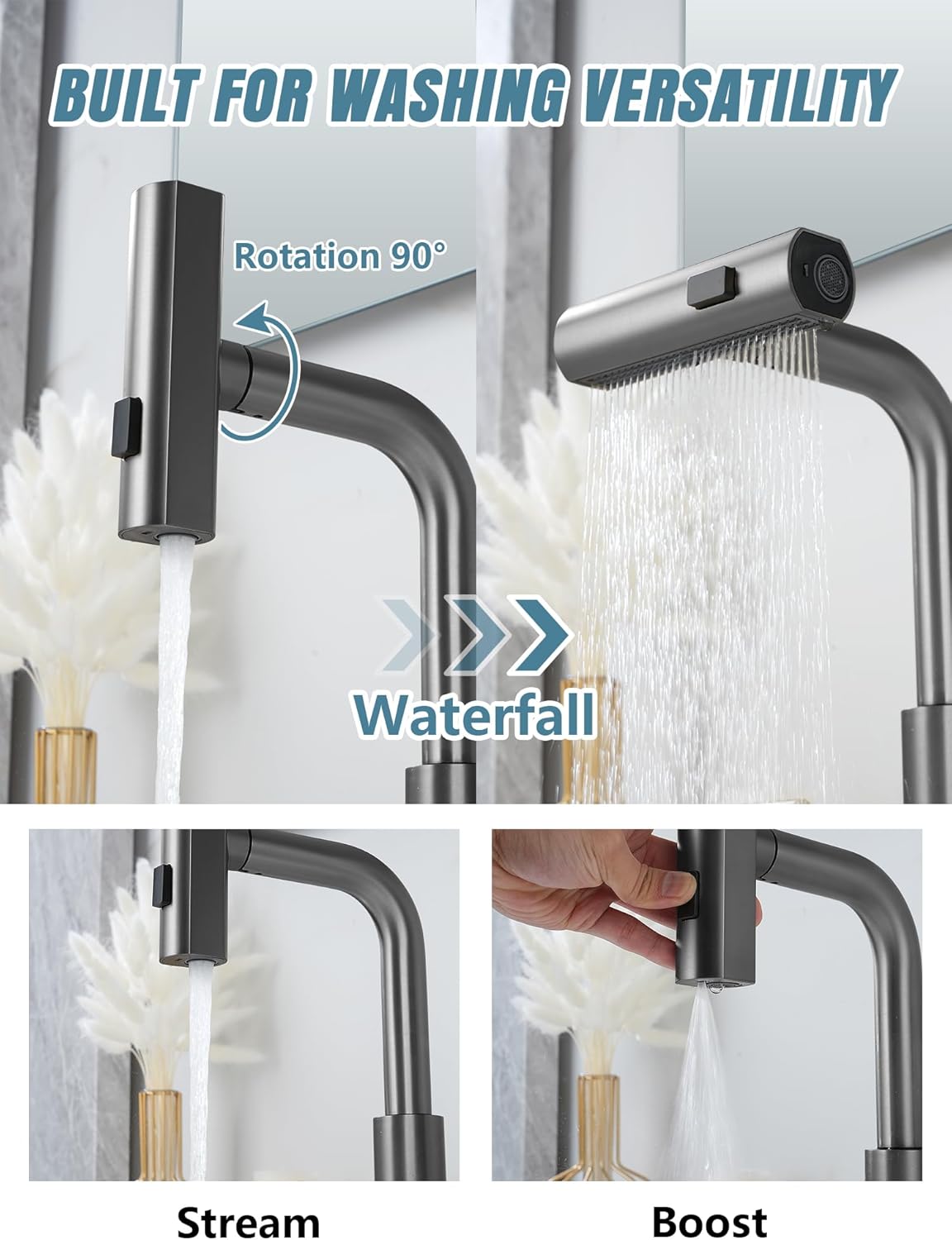 | Additional Features | 360 Swivel, Adjustable Hot Limit, Dual Spout, Pull Out Sprayer |