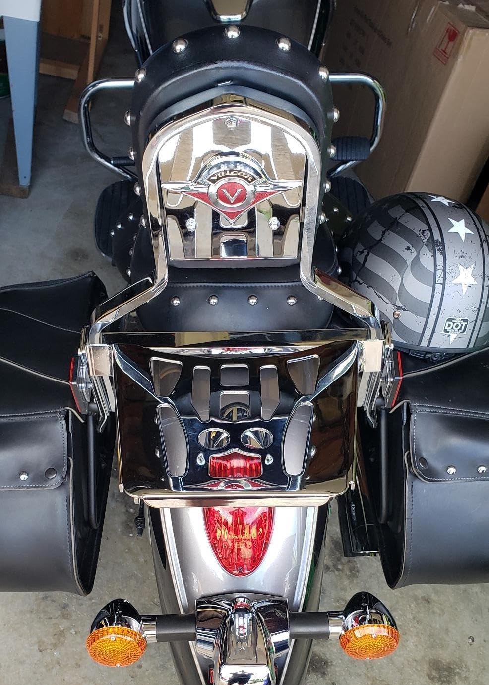 Upgrade your Vulcan with this heavy-duty motorcycle luggage rack, designed for long-lasting durability and superior functionality. Whether you're gearing up for long-distance touring or just need extra storage for your daily rides, this precision-engineered luggage rack provides a secure platform for your gear. ๐ฅ FEATURES: heavy gauge steel construction triple dipped in chrome overall size: 13" x 11" FITMENT: '06-up Vulcan VN900LT models with OEM sissy bars '04-up Vulcan VN2000LT models with OEM sissy bars '09-up Vulcan VN1700LT models with OEM sissy bars โ Doesn't fit regular model, only for LT series โ ๐ด NOTE: Note: Please verify fitment before purchase ๐ด โ Mounting hole distance: 3-15/16" center to center โ Mounting tab distance: 13-1/2" outside to outside โ No hardware included. โ Only the luggage rack is for sale. The sissy bar is not included.