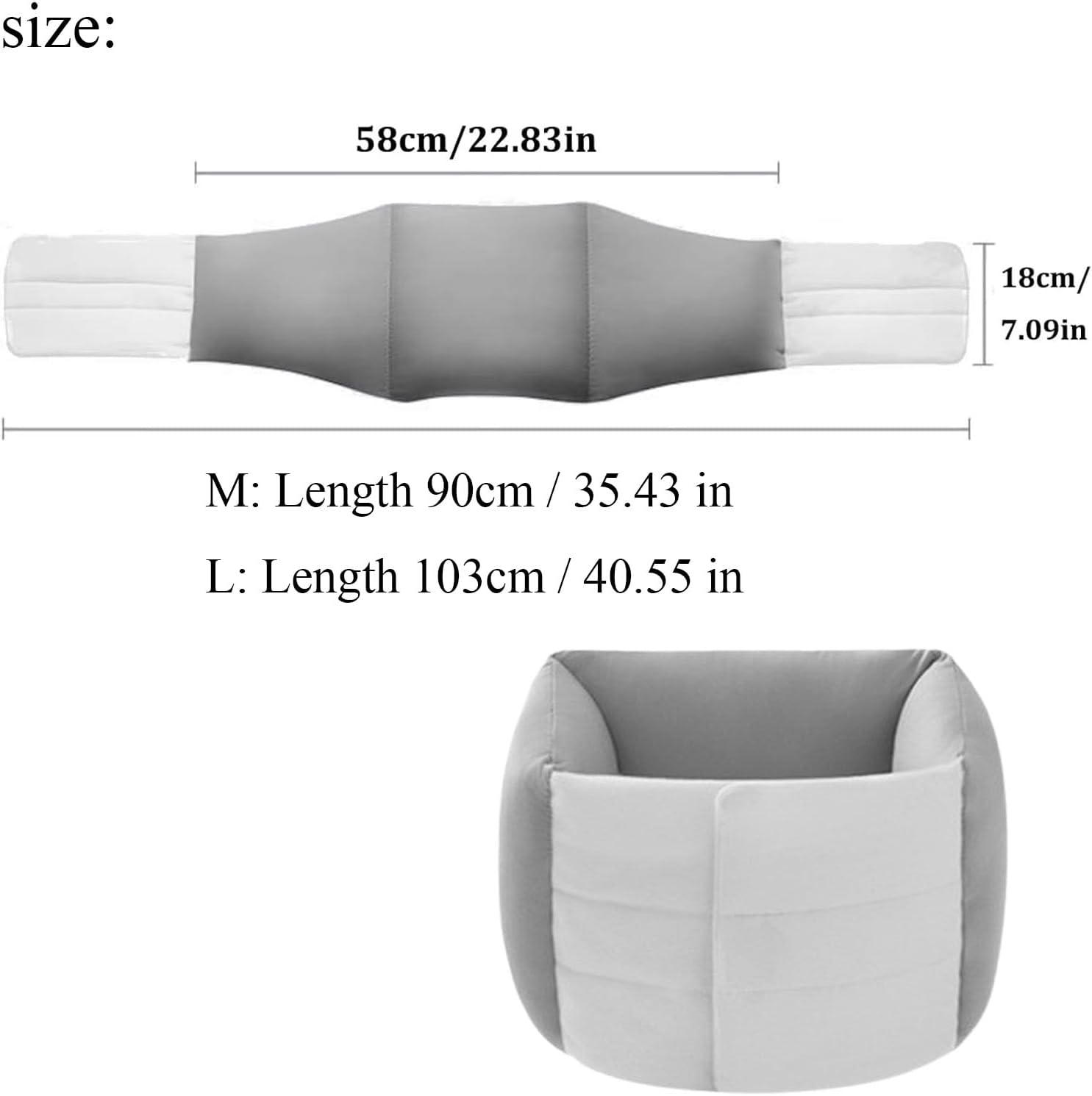 Specifications: Product Name: Lumbar Support Wrap Around Pillow for Sleeping Material: Cotton, Polyester Fiber Colors: Light Gray Size: M, L M(88-132Ibs) - fits 23-32 in waist L(132-198Ibs) - fits 28-37 in waist Suitable: Sleeping Weight: 230 g Package Includes: 1 x Lumbar Support Wrap Around Pillow for Sleeping Notes: 1. Due to manual measurement, please allow a difference of 1-5 g/ 1-2 cm 2. Due to different lighting and shooting conditions, the color of the image may differ from the actual object