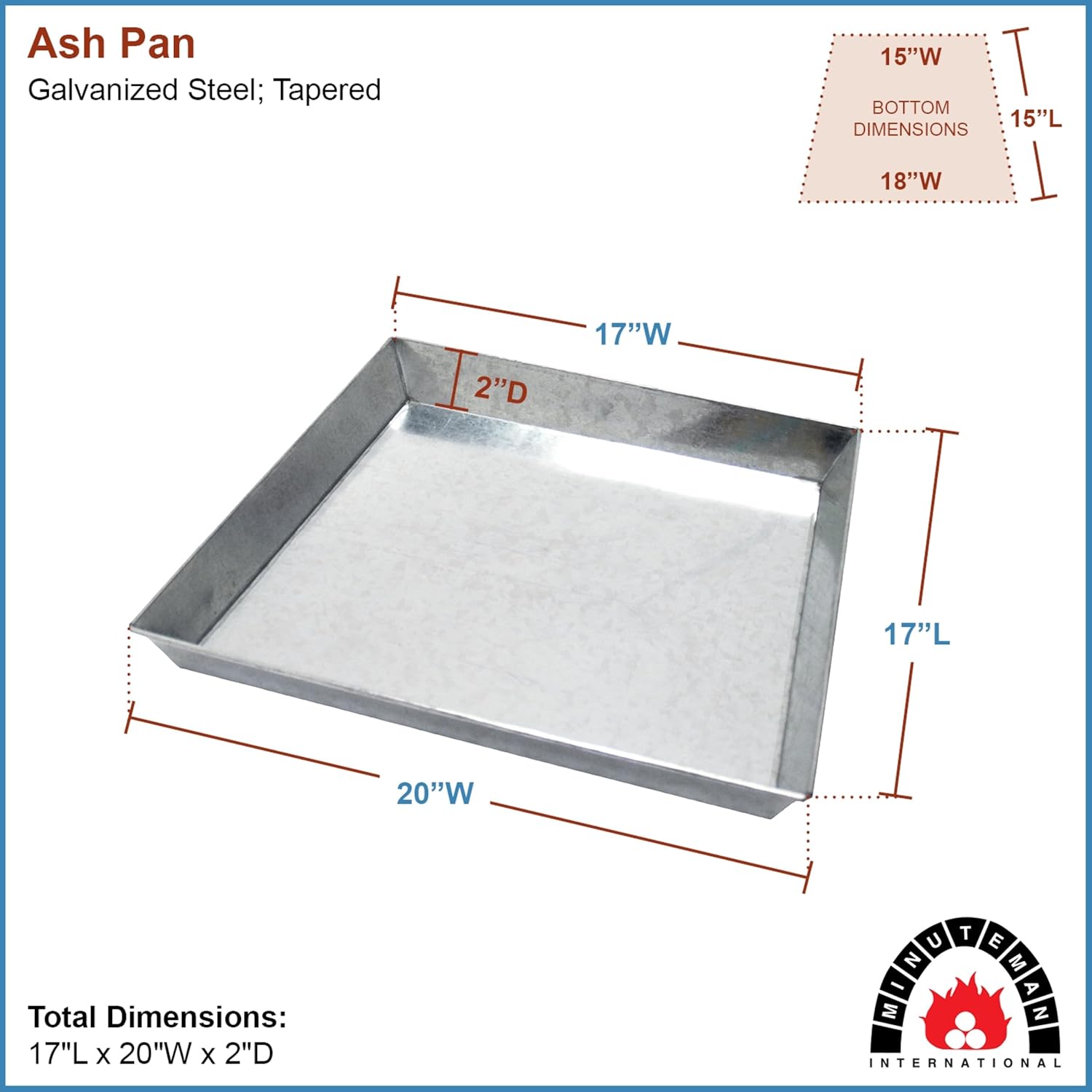 Minuteman International offers a full line of metal Ash Pans, sized to fit beneath our Fireplace Grates. The simple ash pans make it easy to clean out your hearth without making a mess or needing to remove the grate. Just slide the pan out after it has cooled, using the optional handle (sold separately) Our smaller grates have a single pan, larger grates use a pair of pans to accommodate the center legs. Made of galvanized steel, use them in a fireplace or for an outdoor fire, available in both tapered (trapezoidal) shaped pans and non-tapered, rectangular or square, for non-tapered hearths, fire pits or grills.
