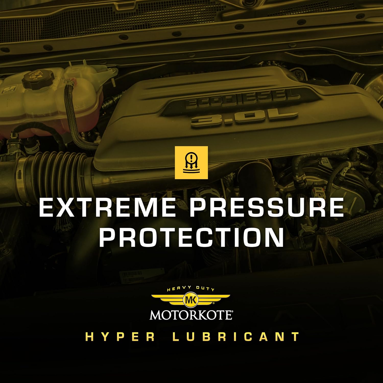 MotorKote Hyper Lubricant Heavy Duty Engine Treatment is specifically formulated to tackle the challenges faced by engines and mechanical systems under heavy-duty conditions, such as friction, heat, and wear caused by high temperatures and demanding applications. This advanced lubricant enhances engine performance, reduces noise and vibration, and protects critical components to extend the life of your vehicle.In addition to improving engine efficiency, MotorKote Hyper Lubricant increases horsepower, lowers operating temperatures, and reduces strain on internal components. Its versatile formula works instantly in gas or diesel engines, providing lubrication and protection across crankcases, transmissions (excluding CVTs), differentials, and power steering systems.MotorKote Hyper Lubricant is designed for heavy-duty, high-temperature engines, ensuring optimal performance in vehicles subjected to rigorous use. The treatment lasts through multiple oil changes, providing long-term benefits and cost-effectiveness. For best results, frequent use enhances fuel economy and keeps your engine running smoothly.BENEFITS• Reduces Friction and Wear: Creates a protective coating that minimizes metal-to-metal contact, reducing damage to engine components. • Improves Performance: Increases horsepower, enhances fuel efficiency, and optimizes engine operation while reducing noise and vibration. • Versatile Application: Suitable for crankcases, transmissions (excluding CVTs), differentials, and power steering systems. • High-Temperature Protection: Engineered for heavy-duty engines operating under extreme conditions, ensuring durability and reliability. • Long-Lasting: A single treatment lasts up to 4 oil changes, offering ongoing protection and improved efficiency.RECOMMENDED USAGE • Can be added at any time, not just during oil changes. • Use 2 oz per quart of oil in engines/crankcases. • Use 1 oz per quart of fluid in transmissions (excluding CVTs), differentials, and power steering systems. • Use 1 oz per quart of fluid in motorcycles.DO NOT USE IN: • Brakes • Radiators • CVTs (Continuously Variable Transmissions)Protect your engine and mechanical systems with MotorKote Hyper Lubricant, the trusted solution for heavy-duty performance, long-term reliability, and enhanced efficiency.