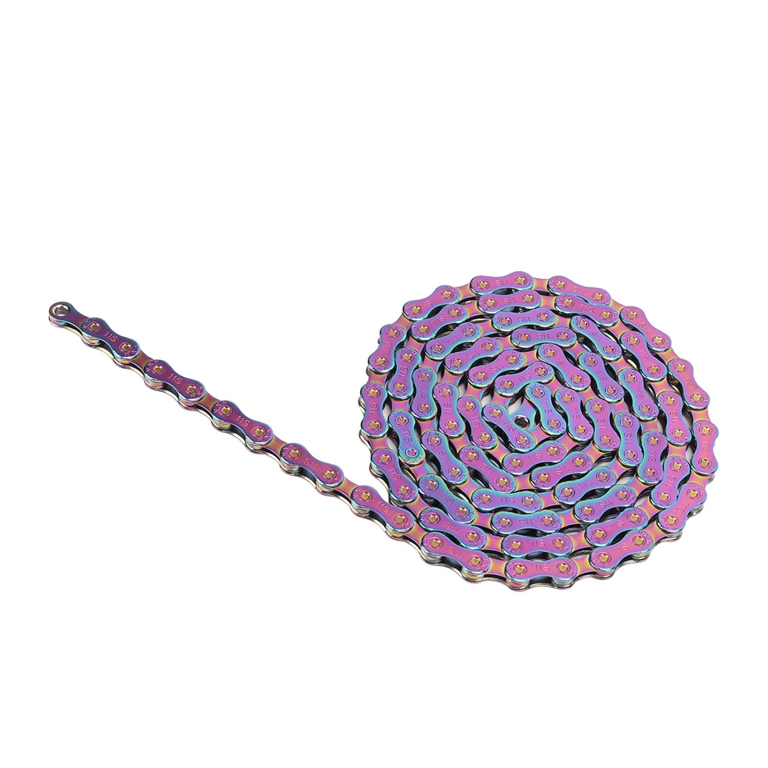 Item Type: Colorful Bike ChainMaterial: Carbon SteelSpeed: 11 SpeedPackage List:1 x Colorful Bike Chain2 x Chain Connector