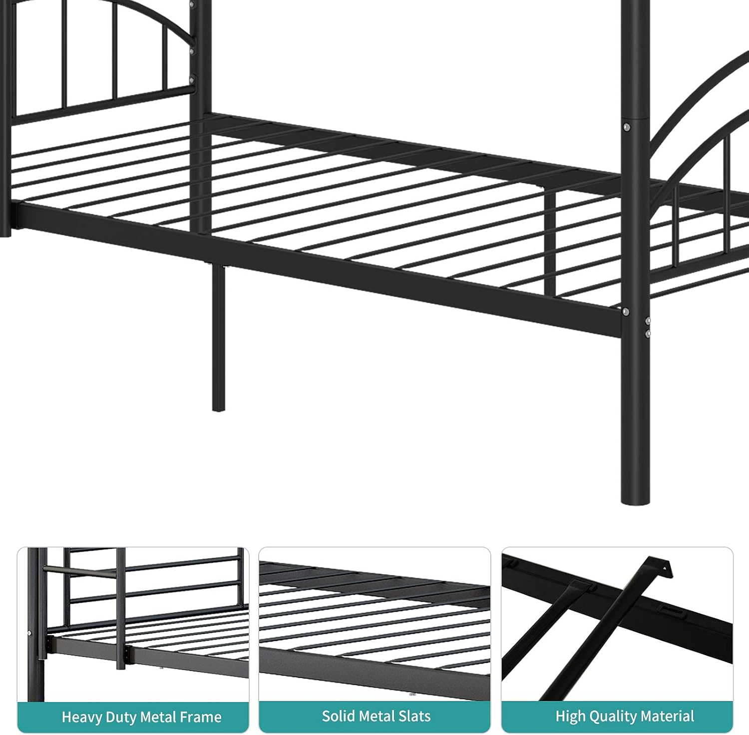 Metal Bunk Bed Twin Over Twin With 2 In 1 Convertible Design With a practical detachable design, this metal bunk beds can be use as a bunk beds or 2 twin size metal beds, high guardrails and a sturdy slanted ladder fastened to the frame for easy access to the top bunk. Easily configure metal bunk beds into two separate twin beds for the ultimate versatility. A ladder provides access to the top bunk and can be attached on either end of the bunk bed, giving you the flexibility to fit it into just about any small space. Value for money, a beautiful morning wake up from bed frame! Features and advantages: 2 In 1 Convertible Design: Separated 2 Beds or bunk beds High Quality All-Metal Structure Sturdy Metal Slats Easy To Assemble 10.67inch Under-Bed Storage mulitiple Colors: blue, white, silver and Mint Green Material: Metal Product Size: 78.4inch L x 41.7inch W x 68.5inch H Max Weight Capacity:330 lbs (upper) / 440 lbs (lower) Installation Tips: Do not tighten the screws during installation. Please tighten all the screws after the bed is installed. Note: Mattress sold separately.