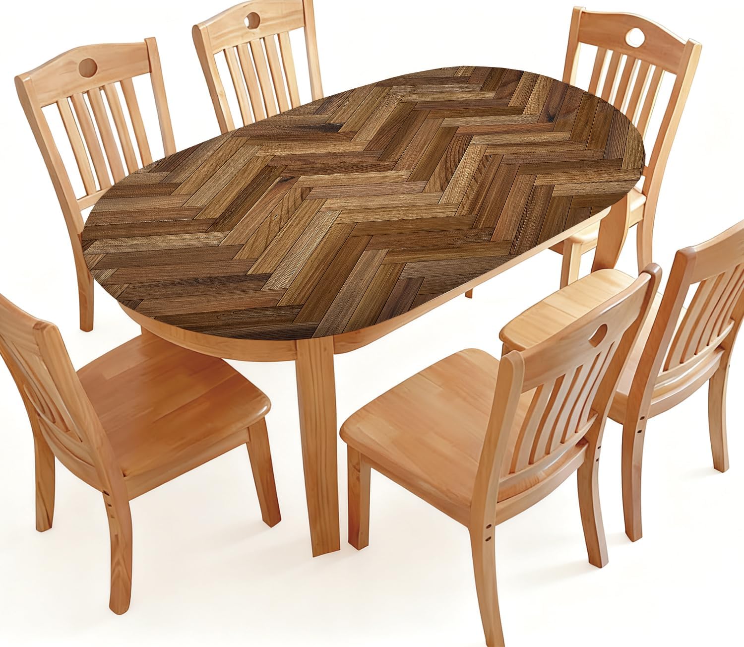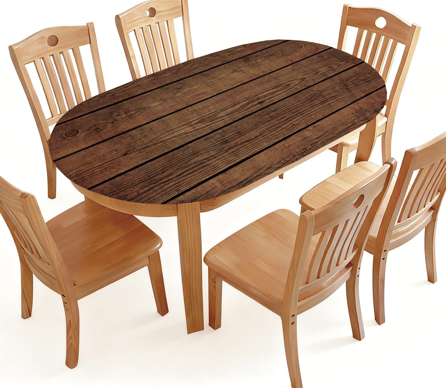 Phyxara oval fitted tablecloth with elastic edge rustic wooden texture background waterproof wipeable table cover for dining kitchen party patio decor