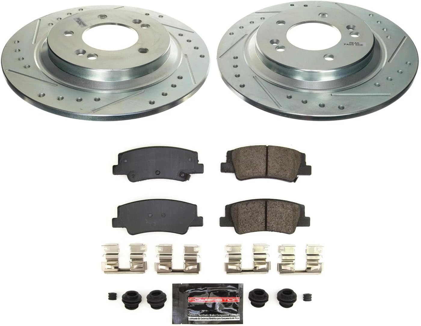 Product: PowerStop Z23 Evolution Sport Brake Pads and Drilled & Slotted Rotor KitWhat’s in the Box: This premium Z23 brake kit upgrade includes Z23 Carbon-Fiber Ceramic Brake Pads, Drilled & Slotted Rotors, Rubberized Shims, and Installation HardwareEngineered For:Long Lasting Performance Seekers - Significant performance improvements above OE brakes with a 3 year / 36,000 mile warranty to back it upThe Enthusiast - Your do it all option to keep you braking quiet and dust free without sacrificing stopping power and temperature control in high demand situationsBolt on ready - This kit includes premium stainless steel hardware for an easy install. No modifications needed to your vehicleComponent Breakdown:The Pads (Z23 Formula) - The included Z23 pads use a low-dust ceramic formula reinforced with carbon fibers. This provides severe-duty stopping power without sacrificing everyday drivability or creating noiseThe Rotors - Zinc plated to protect against rust. The precision drilled holes and rounded slots maximize cooling and wipe away gas/debris—critical for keeping temperatures down during all operating conditionsThe Hardware - High-quality stainless steel installation hardware makes an easy install even easierInstallation: A true bolt-on upgrade. No modifications required. Includes all necessary stainless-steel hardware for a hassle-free installThis Item Fits:Rear: 2020 Hyundai Sonata Rear: 2021-23 Hyundai Sonata Hybrid Blue Rear: 2021-23 Hyundai Sonata Limited Rear: 2021-23 Hyundai Sonata SE Rear: 2021-23 Hyundai Sonata SEL Plus Rear: 2021-24 Hyundai Sonata Hybrid Limited Rear: 2021-24 Hyundai Sonata Hybrid SEL Rear: 2021-24 Hyundai Sonata SEL Rear: 2021-22 Kia K5 LX Rear: 2021-24 Kia K5 EX Rear: 2021-24 Kia K5 GT-Line Rear: 2021-24 Kia K5 LXS