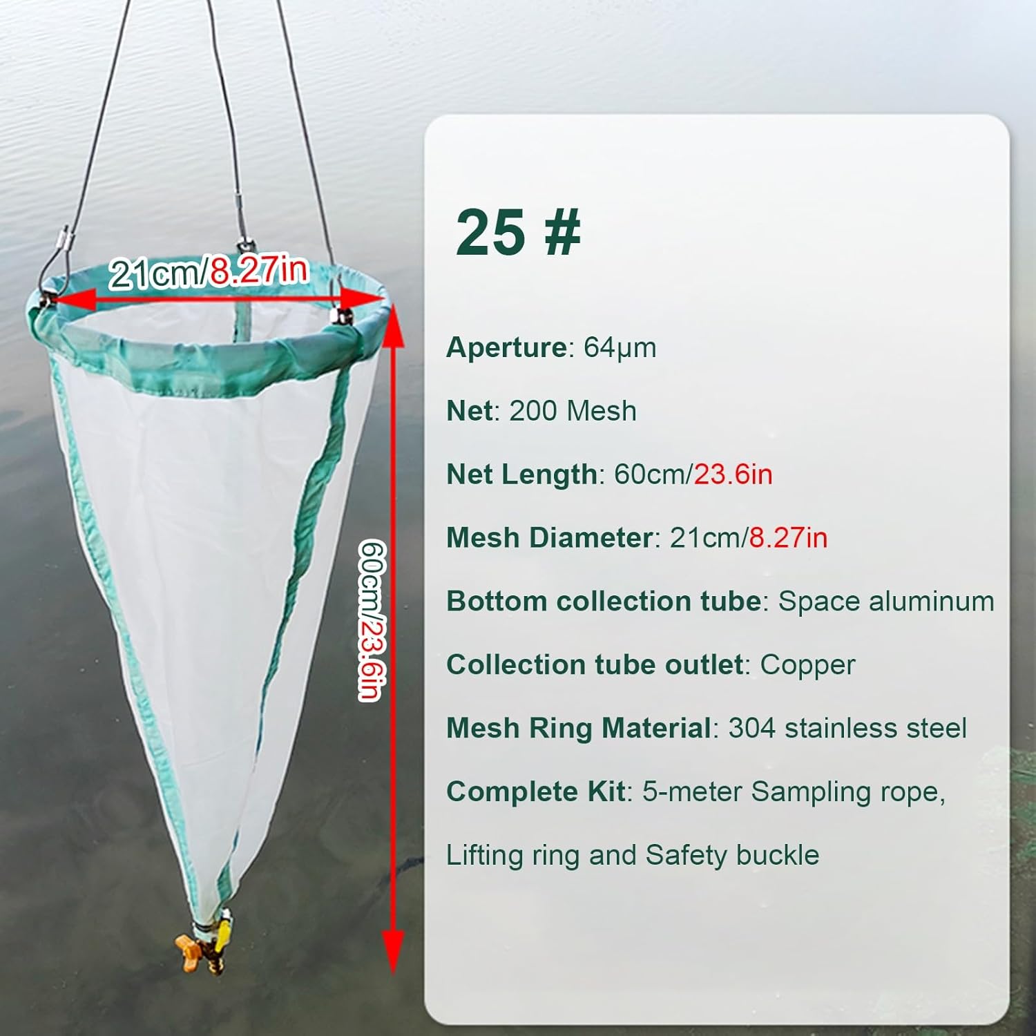 Discover the ultimate solution for efficient plankton sampling with our premium plankton net sampler. Engineered to fulfill diverse sampling requirements, this net combines portability with user-friendly features. With a fine 200 mesh size, 60cm net length, and a 21cm diameter, our sampler is crafted from durable nylon, ensuring long-lasting performance. The robust construction includes a 304 stainless steel net ring and telescopic pole, complemented by a lightweight space aluminum bottom collection tube and a brass valve for reliable operation. Ideal for both novice and seasoned marine researchers, this net allows for rapid plankton collection, making it essential for environmental monitoring and educational purposes. The innovative bottom collection tube features a valve that facilitates easy release of zooplankton, streamlining your sampling process. The three sturdy lifting rings enhance durability, preventing breakage during collection in challenging marine environments. To use, simply drag the net slowly through the water at a speed of 20-30 cm/s in an ‘∞’ pattern for 1-3 minutes. You can then transfer the collected sample into a specimen bottle with a 4% formaldehyde solution for proper fixation. Alternatively, gather water samples at your desired depth and filter them through the net to concentrate your findings. After each use, it’s important to wash and dry the equipment thoroughly, storing it in a cool, dry location to maintain its quality. Included in the package is one mesh plankton net, your gateway to effective aquatic research. Whether you're conducting a scientific study, engaging in educational projects, or exploring marine ecosystems, our plankton net sampler is your reliable companion for quality results.