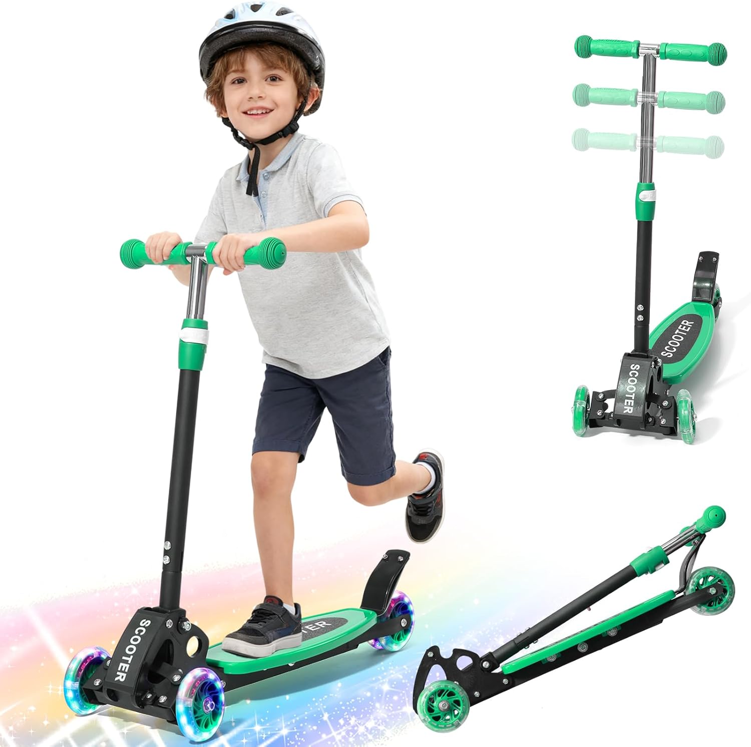 Scooter for Kids 3-5 5-7,Light up 3 Wheels Kick Scooter,Heavy Duty Folding Lean-to-Steer Scooters with 3 Adjustable Handlebar for Boys Girls,Widen Anti-Slip Deck,Rear Break,Holds up to 150Lbs