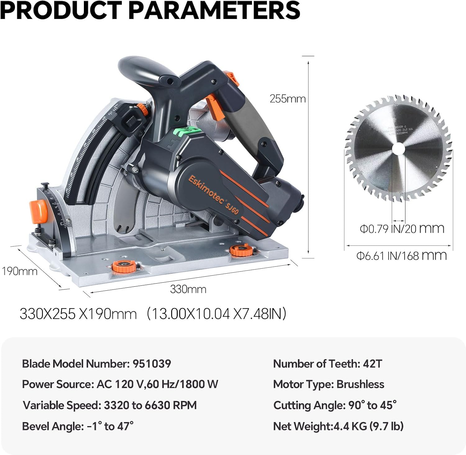 | Specification Met | safety standards for electric power tools, performance standards for track saws |
