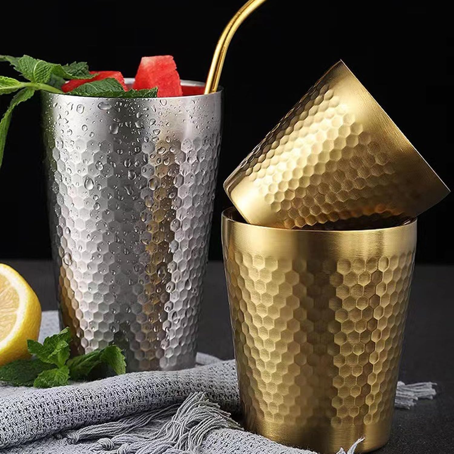 Hayuhone Stainless Steel Cups Set, Double Wall Metal Stackable Insulated Portable Drinking Tumblers Unbreakable Shatterproof Glasses for Home Restaurant Party Camping Travelling