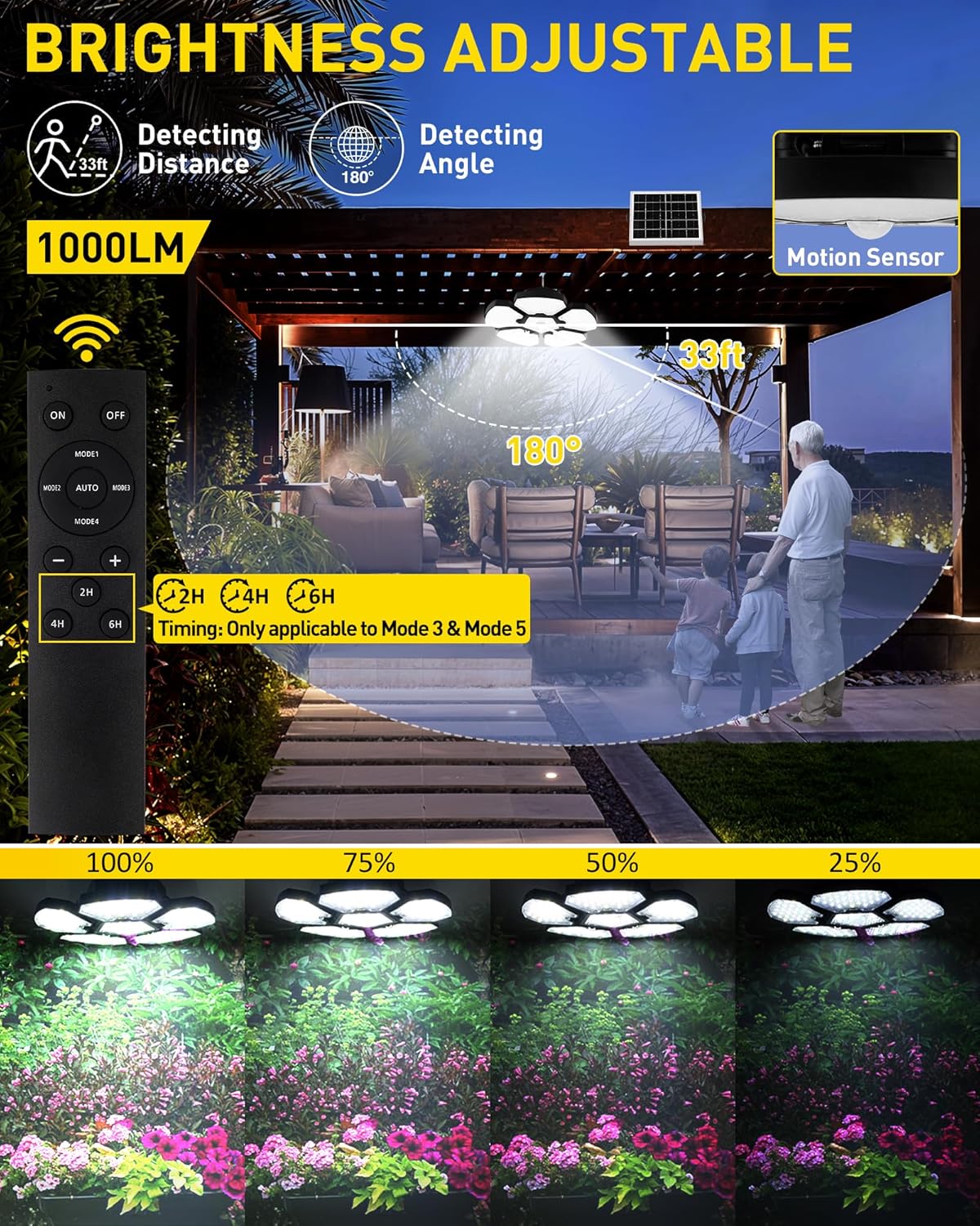T-SUN Solar Shed Light with Motion Sensor & Remote - Upgraded 5+1 Head Design, 4 Lighting Modes, Waterproof Outdoor Security Lights for Garage, Barn, Gazebo, Courtyard & Balcony