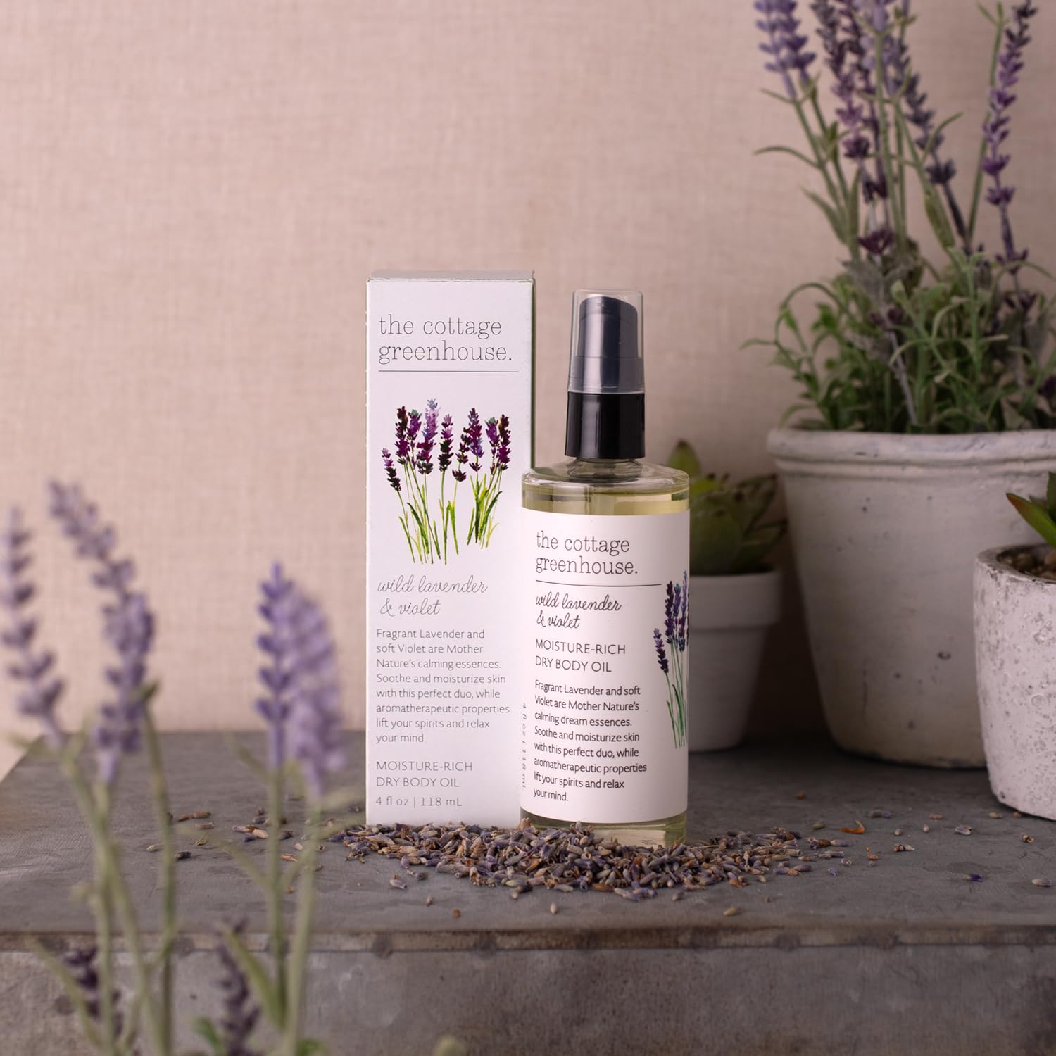 The Cottage Greenhouse Wild Lavender & Violet Dry Body Oil is your ultimate moisture-rich indulgence, delivering happy hydration without a hint of greasiness. This ultra-light formula glides on effortlessly, infused with natural Grape Seed Oil and just the right touch of nourishing Coconut Oil to quench even the thirstiest skin. Fast-absorbing and luxuriously sheer, it leaves behind a satin-smooth finish and a radiant, spa-worthy glow. Subtly kissed with the calming aroma of wild Lavender and delicate Violet, it’s perfect for post-bath pampering, softer shaves, or a quick touch of conditioning anytime your skin craves a little extra love. Nature’s finest ingredients, lovingly blended to treat your skin to pure, botanical beauty.