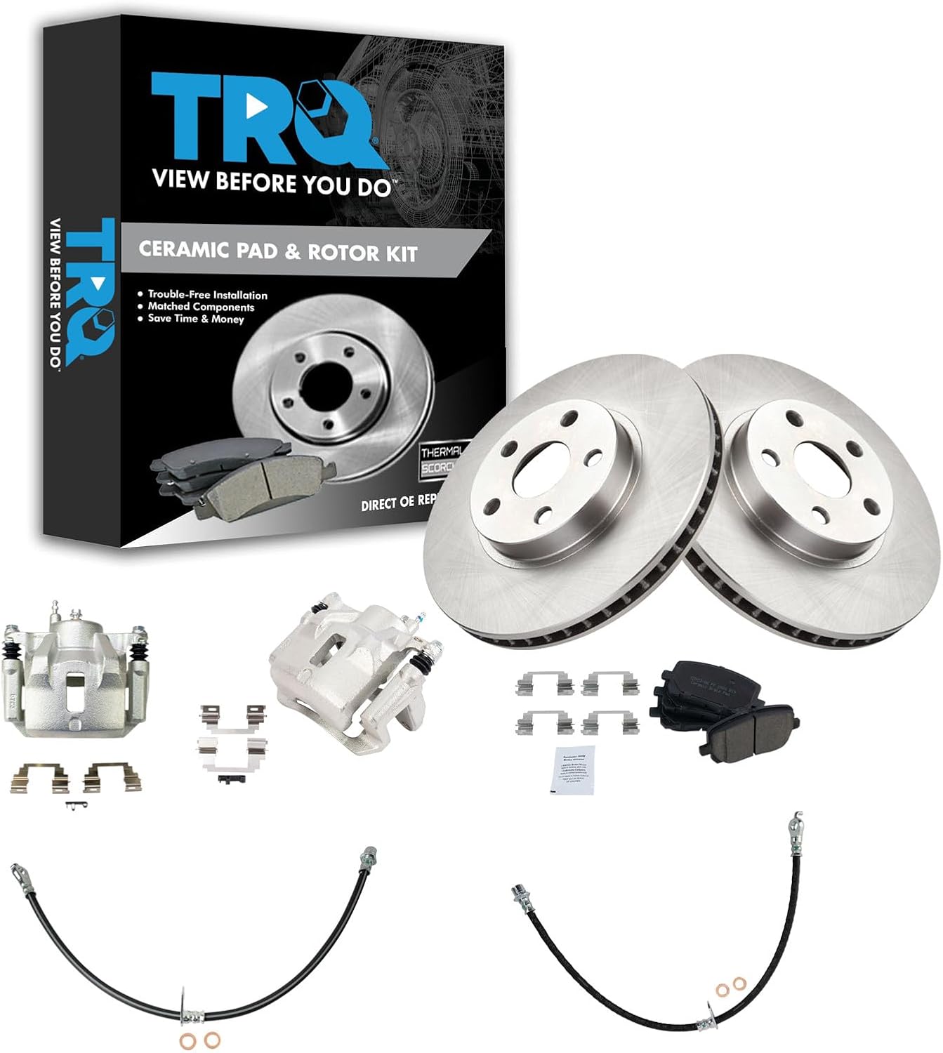 Ceramic Brake Pad & Rotor KitKit Includes(1) Front Ceramic Brake Pad Set(2) Front Brake Calipers(2) Front Brake Rotors(2) Front Replacement Brake HosesFitmentChevrolet HHR 2006 - Front 2007 - LS Front 2007 - LT Front 2008-10 - Front with Rear Drum Brakes with Single Piston Front Calipers 2011 - Front with Single Piston Front CalipersProduct AttributesFriction Material Composition: CeramicBrake Pad Friction Material: CeramicBrake Pad Bonding Type: Premium PosiProduct Features Positive Molded - Less dust resulting in clean wheels G3000 Casting Alloy - Reduced noise and improved wear resistance Application Specific Design - Extended service life, no modificationsItem DetailsTRQ brake kits are designed to restore your brake system to like-new performance. TRQ brake pads are positive molded, thermal scorched, chamfered, and utilize a multi-layer shim for enhanced performance and service life. TRQ rotors have a non-directional finish that reduces the break-in period for new rotors as well as reducing vibrations throughout the rotor’s lifecycle. All products are fit and road-tested in our Massachusetts R&D facility to ensure we deliver on our promise of Trusted Reliable Quality.Reference Numbers14-427214-42731407-80287150.621111524370415281575158082041587041318-B491018-B491118FR2212C18FR2213C18J40492088178622-17350L22-17350R227053132270646422716552228204062580984625957440331-47090331-47091350-47062530-0011155122580382580382FZN580382P580382R99-17350L-C99-17350R-CBD126343BH141455BH382455BR55122C62139C62140EHT1160HFRC11617NFRC11618NH620472MGD1160CHPRT5661SGD1160C