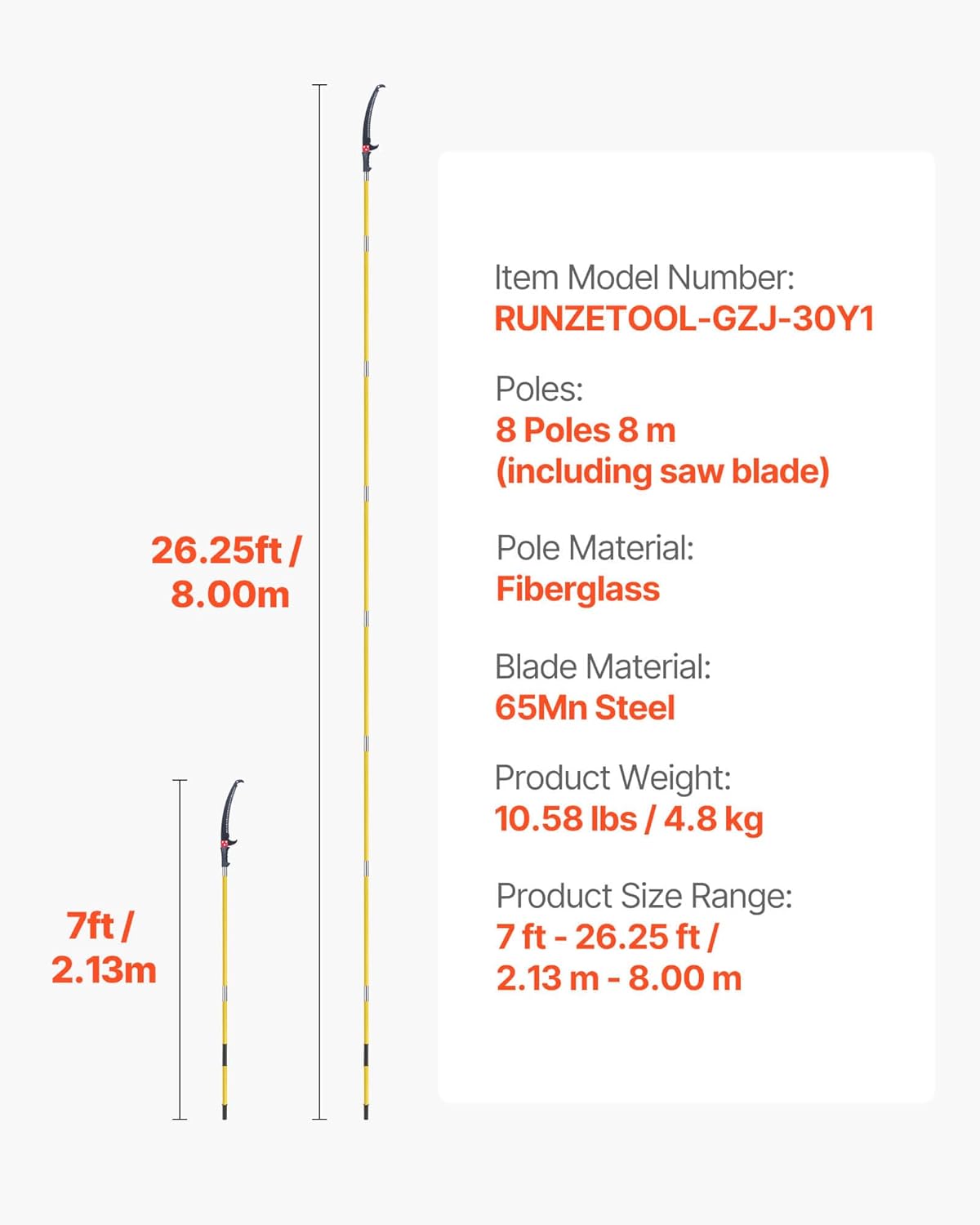 | Item Type Name | 3.84-26.25 ft Extendable Pole Tree Pruner, Sharp 65Mn Steel Blade, Lightweight Fiberglass Handle Pole, Double-Hook Saw for High Branch Trimming, Pruning Tool for Palms, Shrubs |
