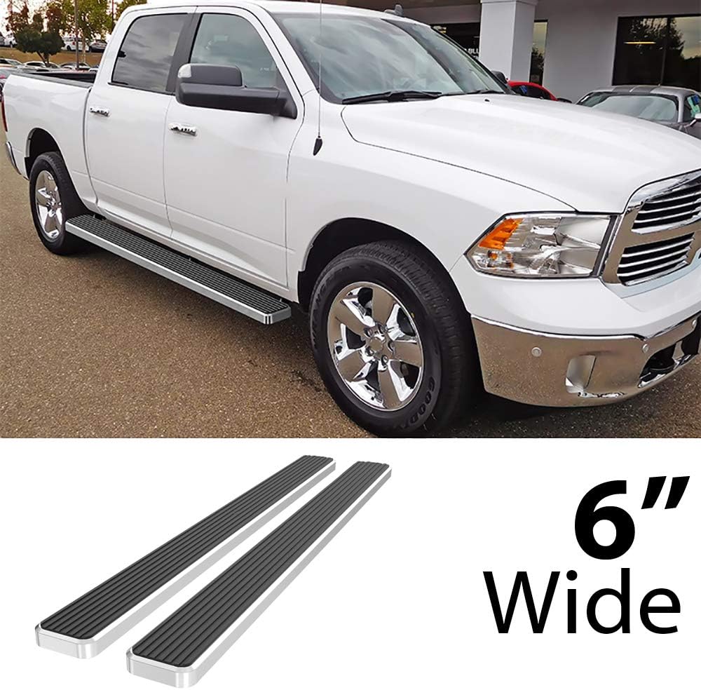 FitmentsCompatible with Dodge Ram 1500 2009-2018 Crew Cab 5.5ft Short Bed Compatible with Ram 1500 2009-2018 Crew Cab 5.5ft Short Bed Compatible with Dodge Ram 2500 2010-2026 Crew Cab 5.5ft Short Bed Compatible with Ram 2500 2010-2026 Crew Cab 5.5ft Short Bed Compatible with Dodge Ram 3500 2010-2026 Crew Cab 5.5ft Short Bed Compatible with Ram 3500 2010-2026 Crew Cab 5.5ft Short Bed (Incl. 19-24 Ram 1500 Classic Body Style)(Excl. Chassis Cab With Diesel Models)IntroductionWheel to wheel running boards provide easy truck bed access to longer wheel-base pickup trucks. These running boards span front to rear wheel, whereas other side steps are just door to door length. eBoard running boards are custom fit and install bolt-on style to your truck's frame or rocker panel (applications vary). eBoards have a simple, low profile design that put bulky and over styled nerf bars to shame. The eBoard's aircraft grade aluminum body supports up to 500 lbs without flexing. With a full length, non-slip step pad, these running boards offer a safer and more comfortable step for passengers and drivers alike. Available in 4, 5, or 6 inches, and finishes in brushed aluminum or powder coated black, eBoard running boards are a top choice for your family!SpecificationMaterial: T6 Aircraft Grade AluminumFinish: Brushed AluminumStyle: wheel to wheel running boardsInstallation: Rocker Panel Mount (Drilling Required)Item OfferedSet (2) of running boards + brackets + hardware