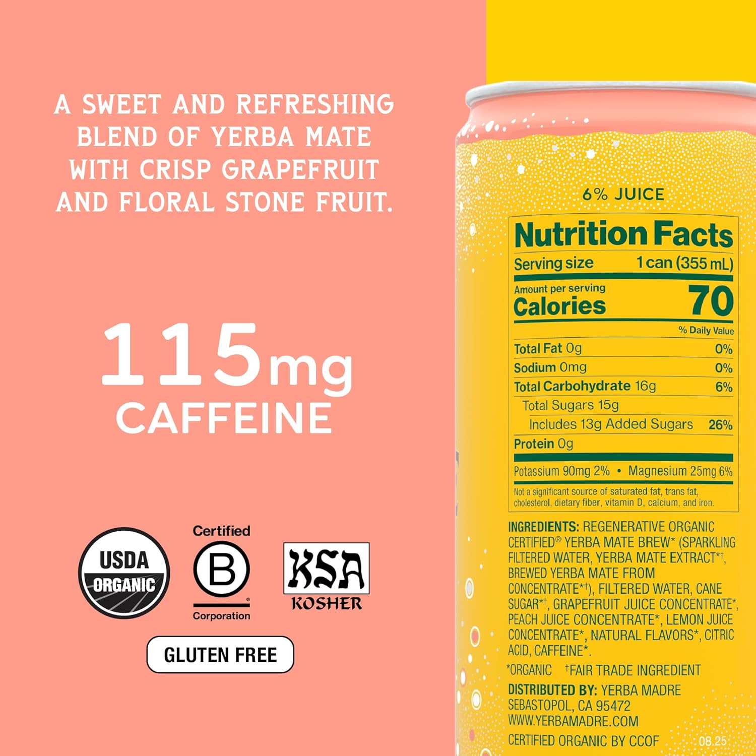 | Special Ingredients | organic agave syrup, organic grapefruit juice, organic yerba mate extract, organic ginger juice, organic caffeine |